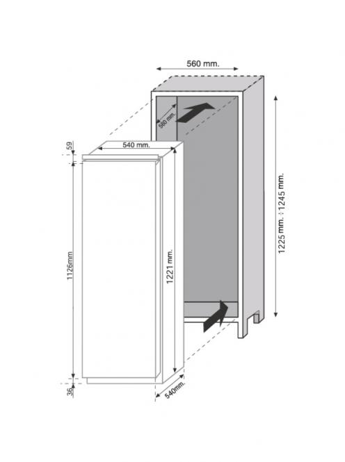 122 cm hoher Einbaukühlschrank ohne Gefrierfach. Aufgrund des großen Fassungsvermögens ideal für Familien mit separatem Gefrierschrank oder für diejenigen, die den Platz für die Lagerung frischer Produkte maximal ausnutzen möchten.