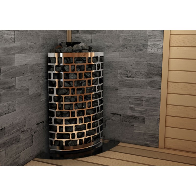 ✅ Kampinis dizainas: Leidžia krosnelę įsprausti į kampą, taupant brangų pirties plotą.