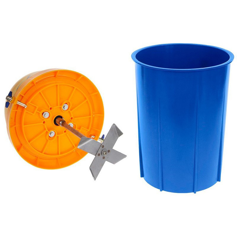 Das Butterfass hat ein Gesamtvolumen von 11 Litern, ist aber so konzipiert, dass es am effektivsten mit 3–6 Litern Sahne arbeitet. Dies ist die ideale Menge für einen Haushalt – nicht zu wenig, um das Einschalten zu rechtfertigen, und nicht zu viel, um den Motor zu überlasten.