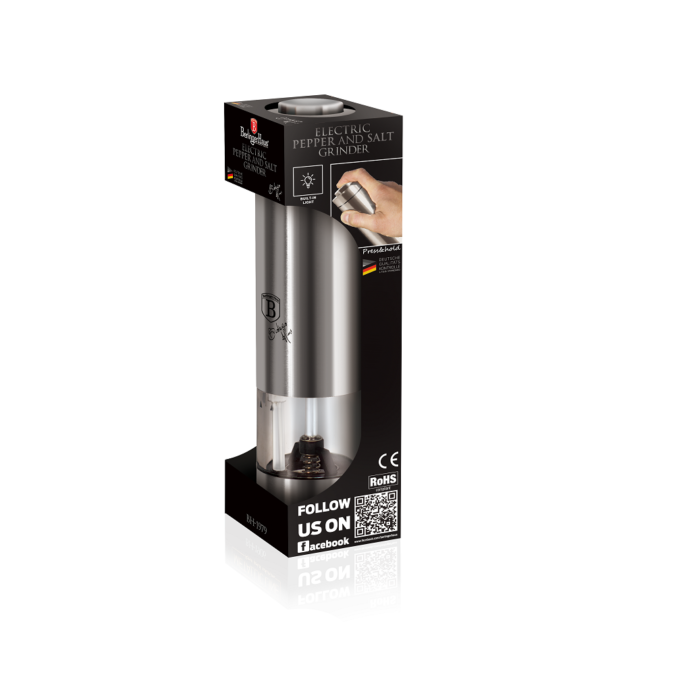 - Mit der stilvollen und eleganten elektrischen Salz- und Pfeffermühle von BerlingerHaus können Sie Ihre gewünschte Gewürzmahlung wählen, von feinstem Staub bis hin zu gröberen Körnern. Beim Zubereiten oder Genießen von Speisen ist es sehr nützlich, eine Gewürzmühle zur Hand zu haben. Auf Knopfdruck mahlen Sie Gewürze – alles einfach und schnell.