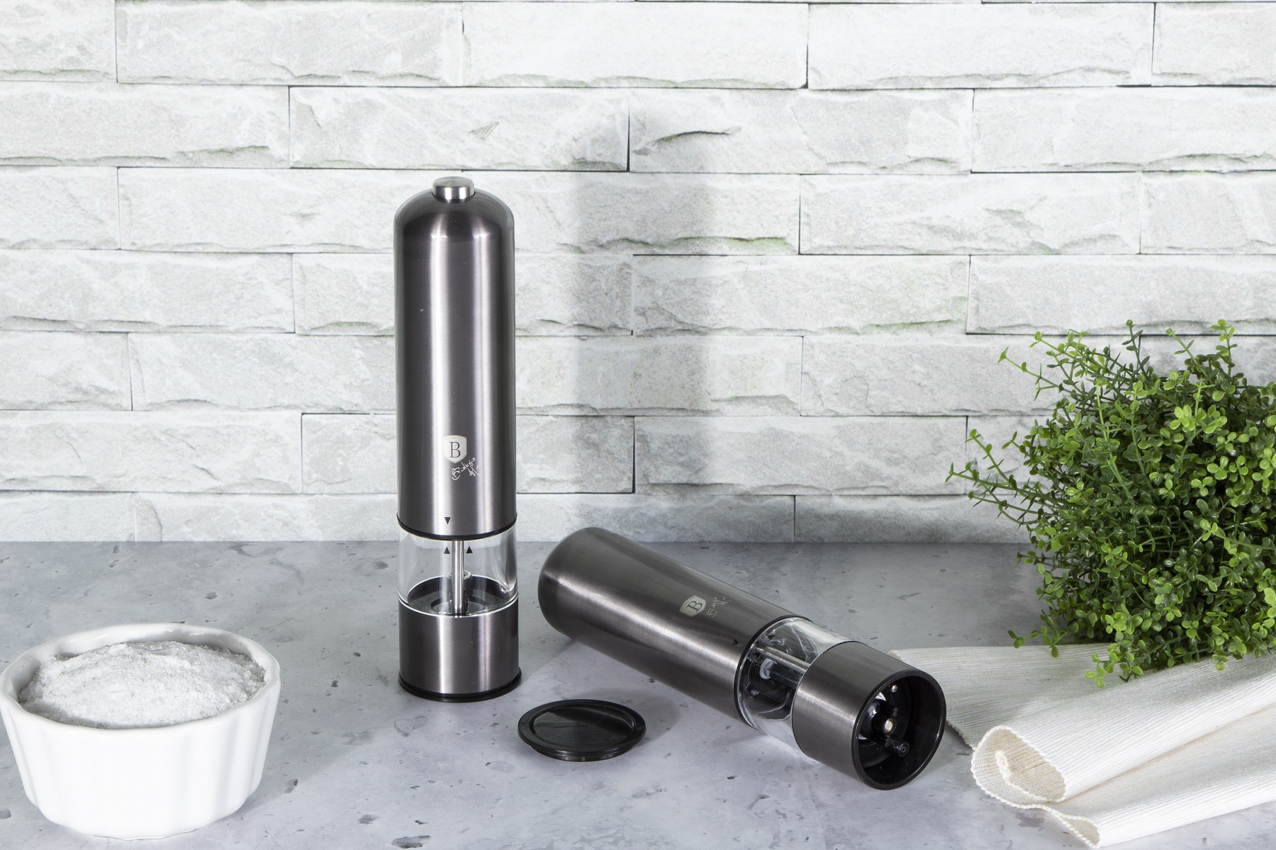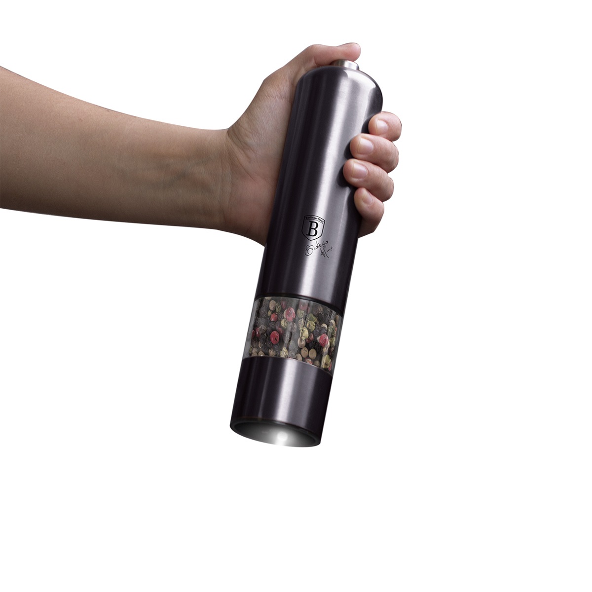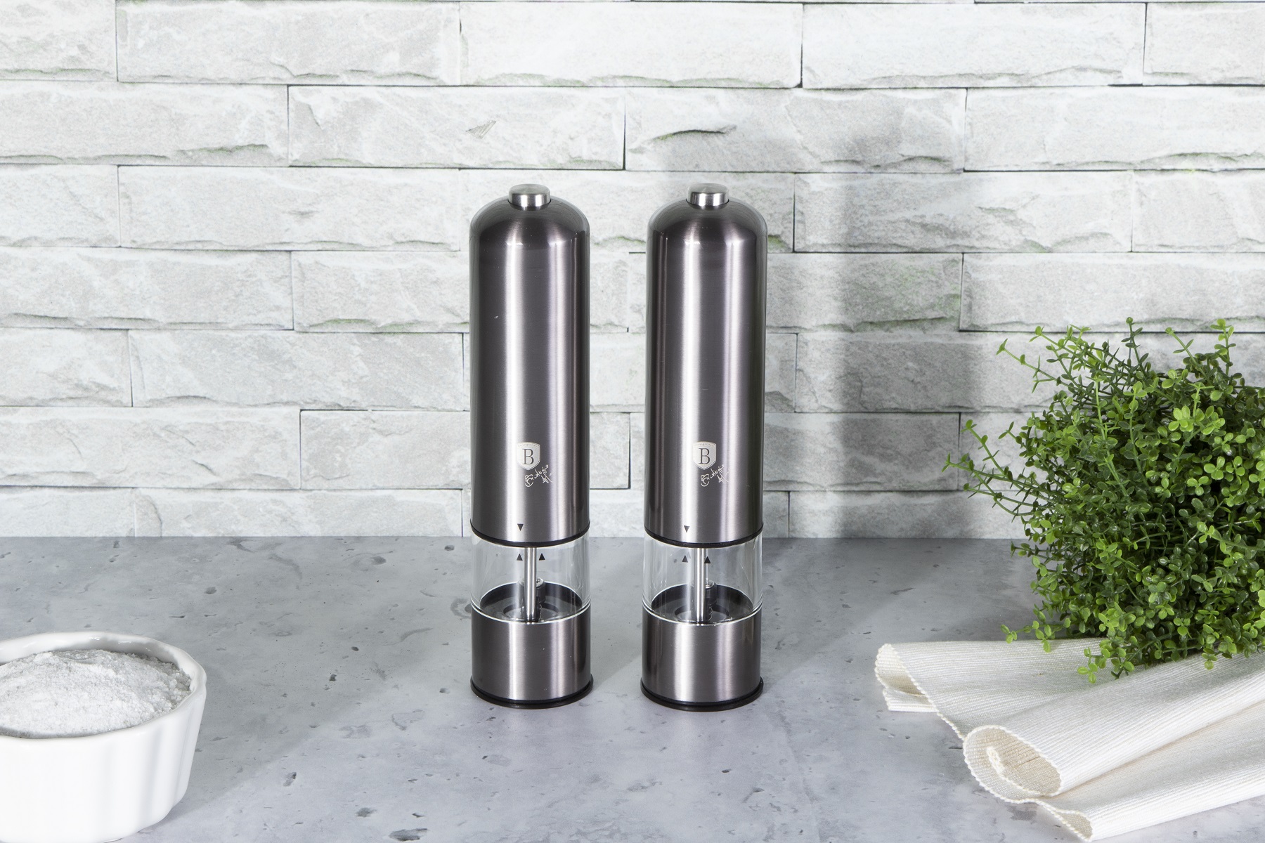 Erleben Sie das reibungslose Würzen mit den Elektrischen Salz- und Pfeffermühlen BH/9288 Berlinger Haus aus der renommierten Carbon Pro Kollektion. Hergestellt aus Edelstahl und mit keramischen Mahlwerken strahlen diese Mühlen elegante dunkelgraue Eleganz aus. Betrieben mit 4 AA-Batterien (nicht im Lieferumfang enthalten) und mit eingebautem Licht versehen, verändern sie Ihr Essenserlebnis.
