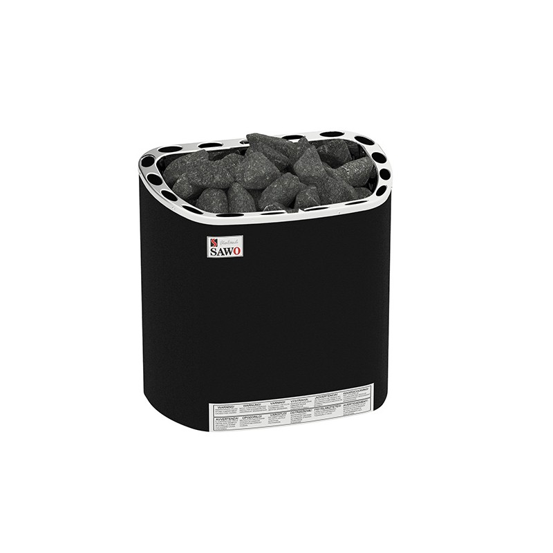 Der Ofen ist für mittelgroße Familiensaunen (von 4 bis 9 m³) konzipiert. Durch die Wandmontage spart er Bodenfläche, und die elegante Velours-Oberfläche fügt sich perfekt in ein modernes Sauna-Interieur ein.