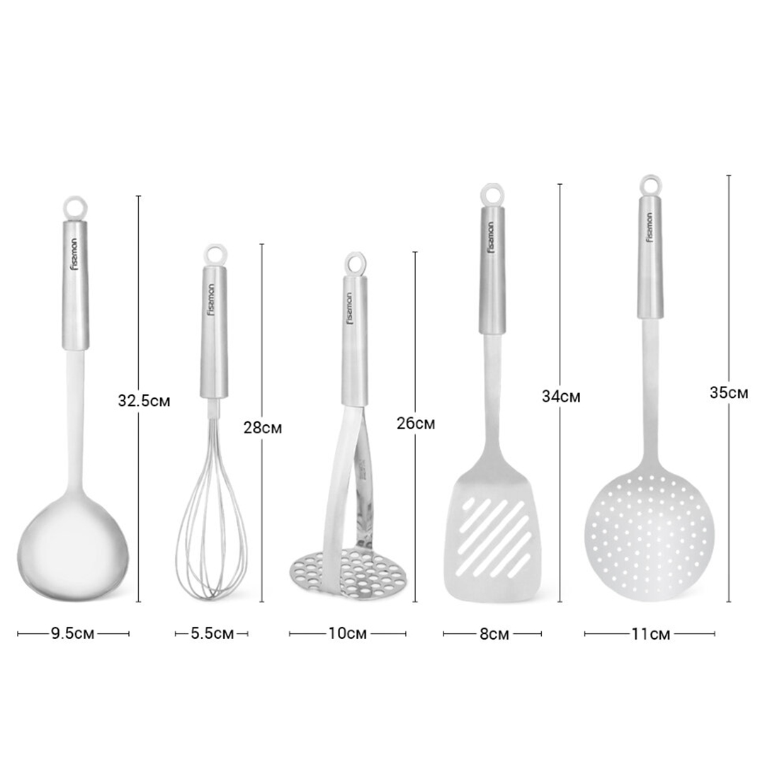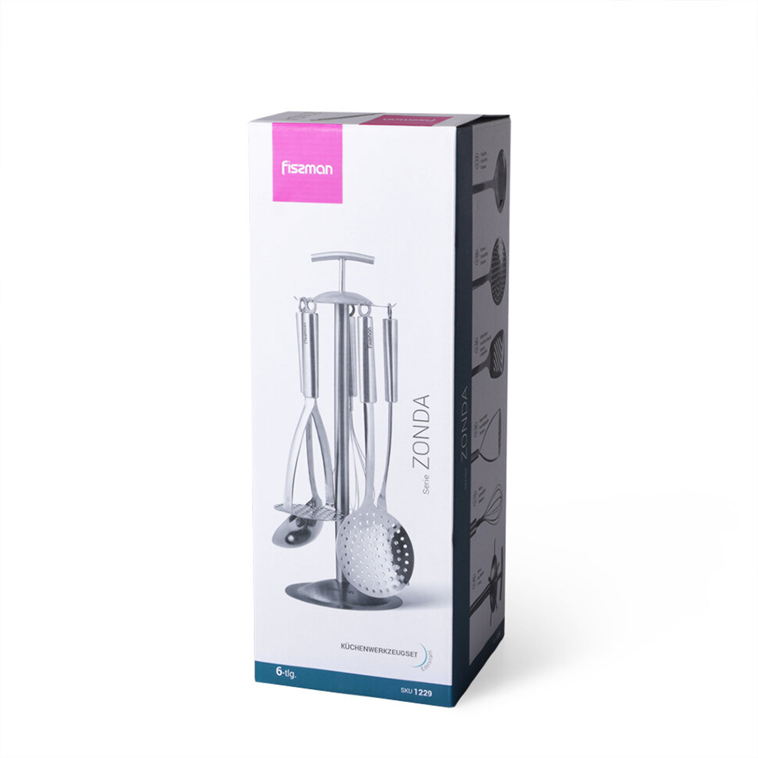 Zuverlässige und praktische Küchenhelfer von Fissman helfen Ihnen, selbst die kreativsten Ideen problemlos umzusetzen. Dieses elegante “ZONDA”-Set ist eine perfekte Lösung, die fünf wichtige Kochutensilien in einem praktischen und stilvollen Ständer vereint.