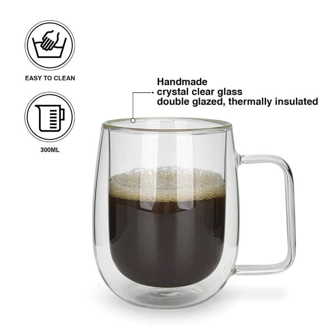 Der Hauptvorteil dieser Gläser ist der Luftspalt zwischen den beiden Glaswänden. Diese isolierende Eigenschaft wirkt wie eine Thermoskanne: Heiße Getränke wie Kaffee oder Tee bleiben viel länger heiß, und kalte Getränke oder Desserts bleiben länger erfrischend.