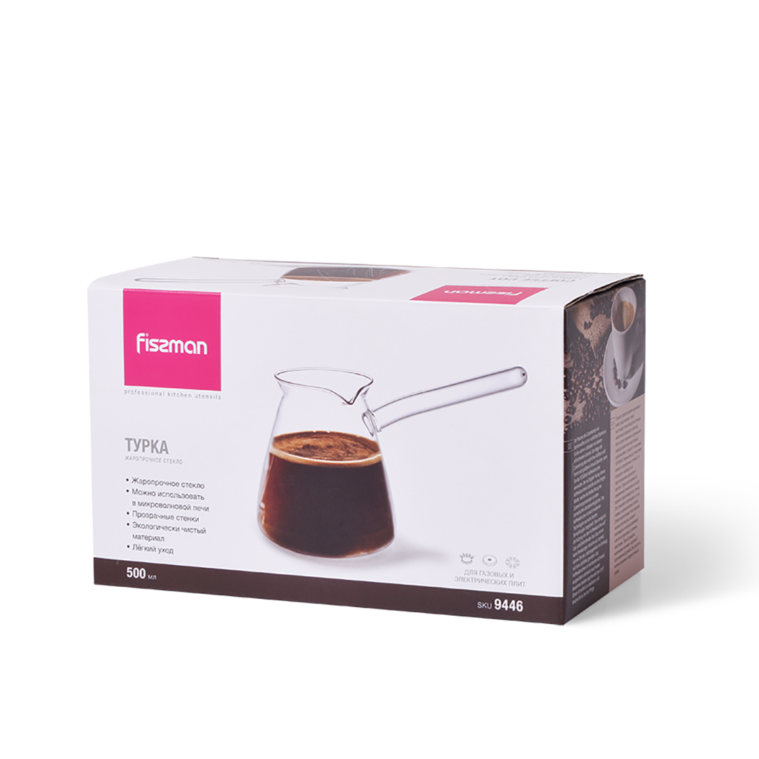 Spezifikationen Typ: Glaskaffeekanne (Džezva) Marke: Fissman Modell: F-9446 Material: Borosilikatglas Fassungsvermögen: 500 ml Herdtypen: Gas (mit Flammenverteiler), Elektro, Glaskeramik (nicht für Induktion geeignet) Hersteller: Fissman Gewicht: ~0.25 kg Verpackungsmaße: 13 x 12 x 12 cm