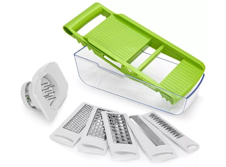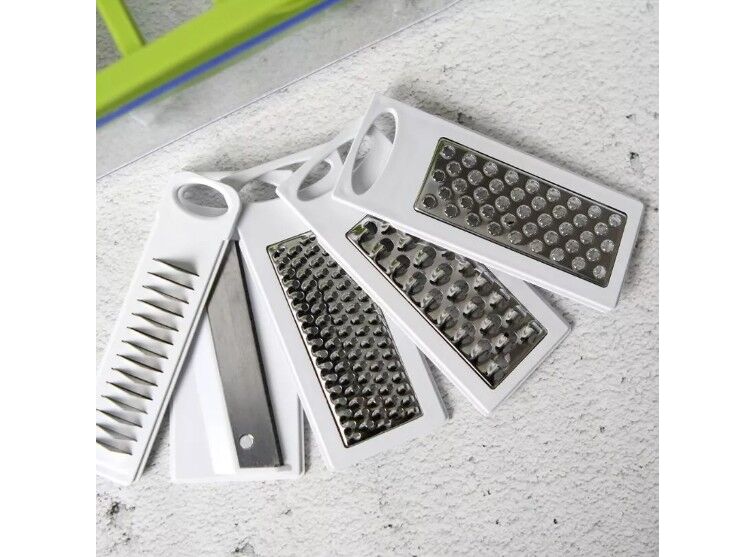 Für Ihre Sicherheit ist im Set ein spezieller Gemüsehalter enthalten, der Ihre Finger zuverlässig vor scharfen Klingen schützt. Stabile Stahlbeine mit “Soft-Touch”-Beschichtung und ein ergonomischer Griff sorgen dafür, dass der Schneider nicht verrutscht und komfortabel zu bedienen ist. Alle austauschbaren Klingen lassen sich bequem in einem speziellen Behälter verstauen, sodass sie nicht viel Platz beanspruchen und sicher aufbewahrt werden können.