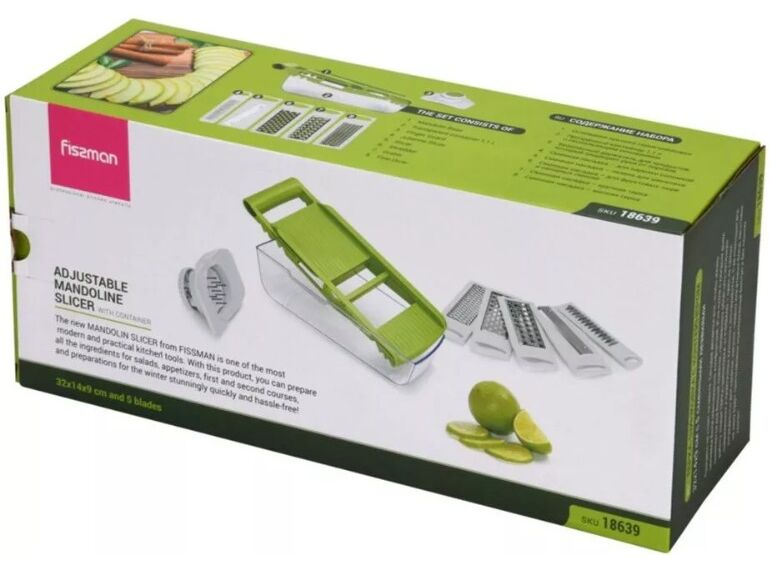 Verwandeln Sie das Schneiden von Gemüse und Obst in eine einfache und angenehme Tätigkeit mit dem Fissman Multifunktions-Schneider und -Hobel. Dieses moderne und praktische Küchengerät ermöglicht es Ihnen, schnell und mühelos Zutaten für Salate, Vorspeisen, Hauptgerichte oder sogar hausgemachte Chips und koreanische Karotten zuzubereiten!