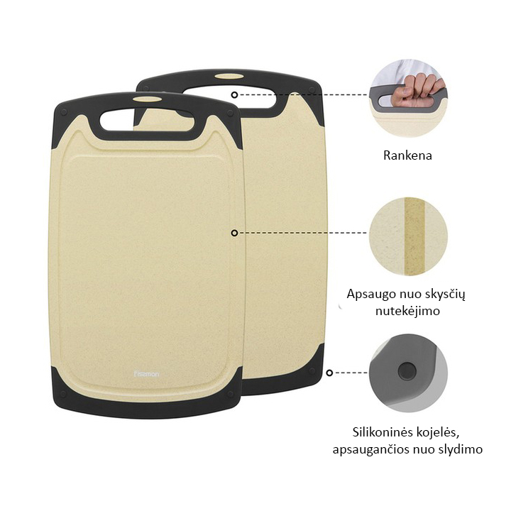 * Warum ist ein Kunststoffbrett besser als ein Holzbrett? Die Hauptvorteile sind – ein Kunststoffbrett kann in der Spülmaschine gereinigt werden, es ist nicht-porös, daher hygienischer (besonders beim Schneiden von rohem Fleisch) und nimmt keine Gerüche auf.