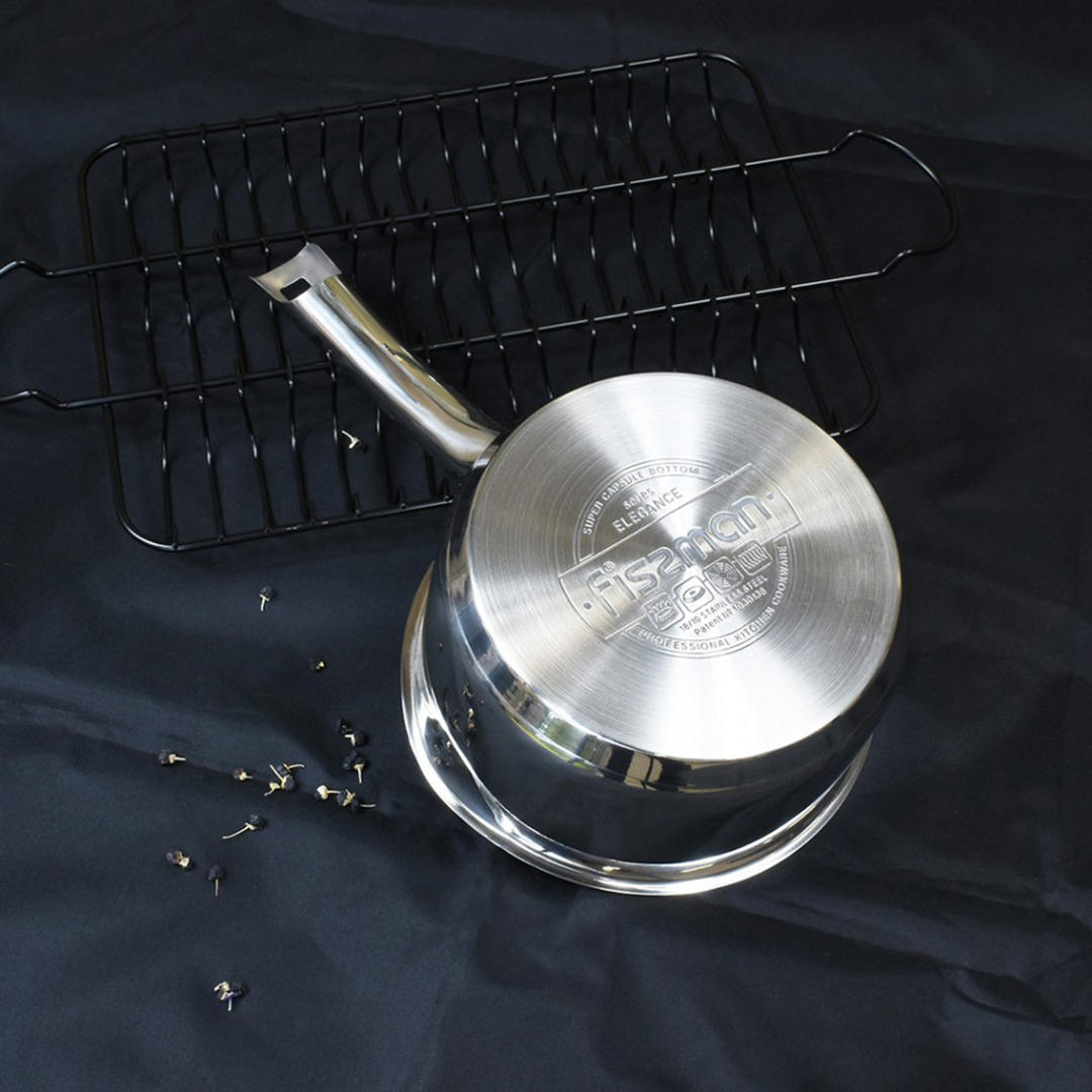 Der Stieltopf ist aus hochwertigem 18/10 Edelstahl gefertigt. Ein spezieller 3-Schicht-Thermoakkumulationsboden sorgt für schnelles Aufheizen und gleichmäßige Wärmeverteilung und spart so Energie. Der lange, kühl bleibende Griff sorgt für eine sichere Verwendung auf dem Herd.