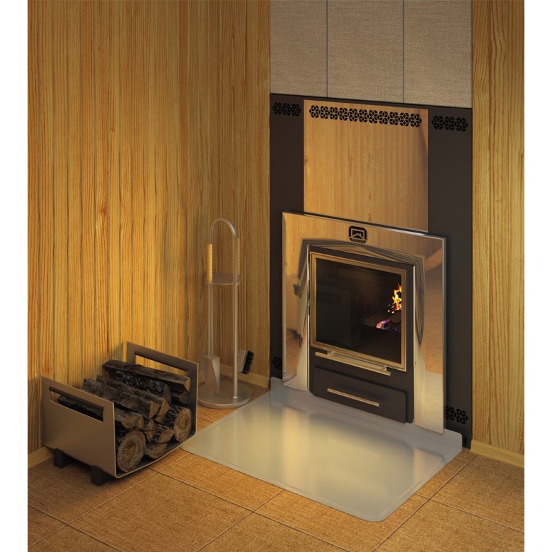 Der Schutzschirm „AC.01.200.00“ ist zum Einrahmen des Brennstoffkanals eines Saunaofens vorgesehen, wenn die Sauna aus einem Nebenraum durch eine brennbare Wand befeuert wird. Er dient als Hitzeschild, der die Wände vor Überhitzung und möglichen Bränden schützt und dem Saunaruheraum gleichzeitig ein ordentliches und vollendetes Aussehen verleiht.