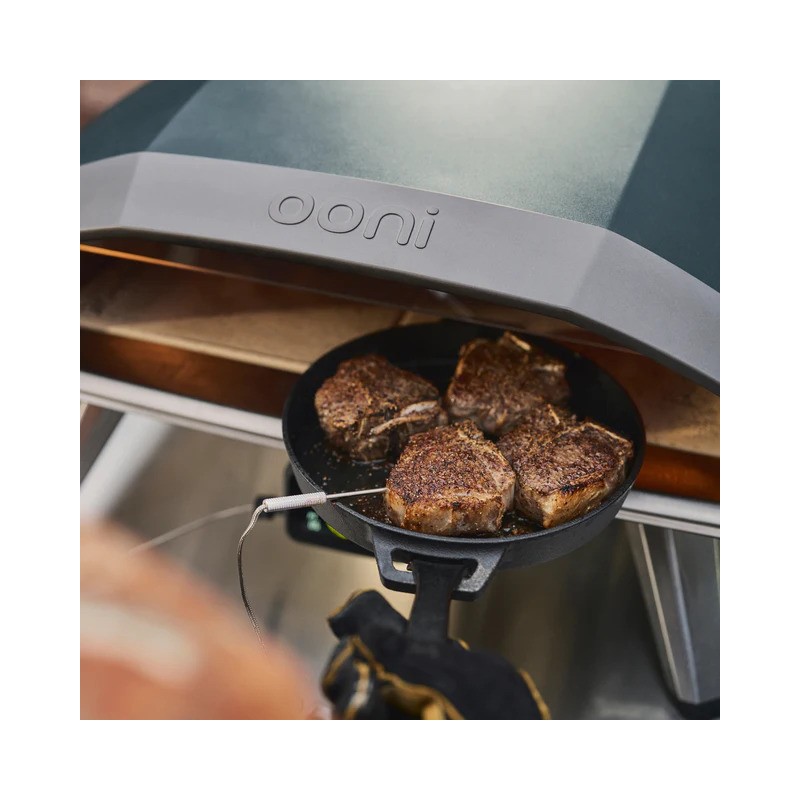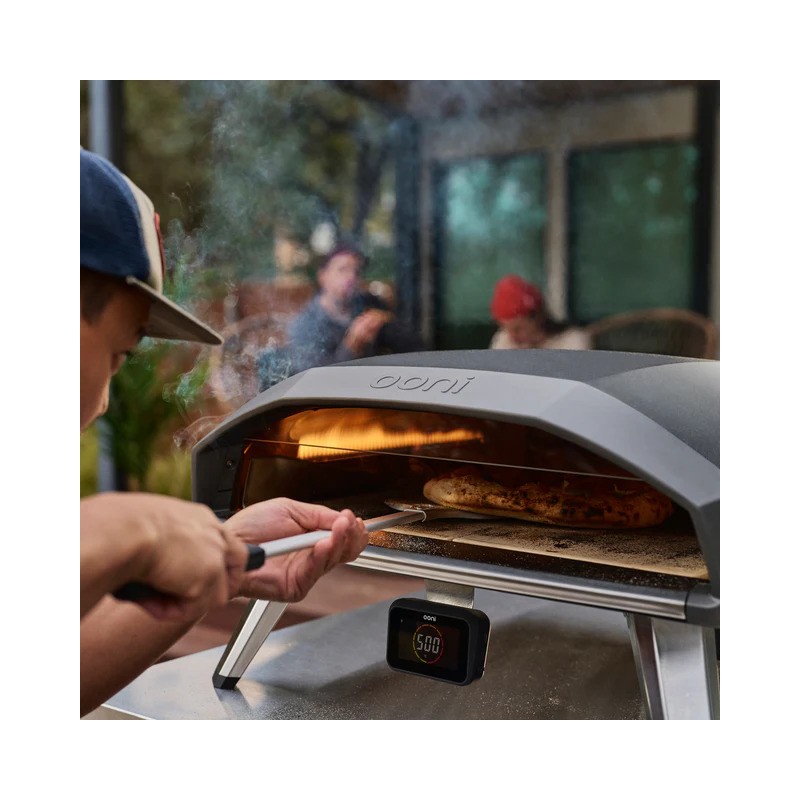 Backen Sie smarter mit dem Ooni Connect™ Digitalen Temperaturhub mit Bluetooth-Unterstützung. Das Frontdisplay zeigt Umgebungstemperatur und Food-Probe-Messwerte in Echtzeit an, und wenn Sie mit Ihrem Telefon verbunden sind, erhalten Sie Benachrichtigungen, die Ihnen helfen, jedes Mal perfekte Ergebnisse zu erzielen.