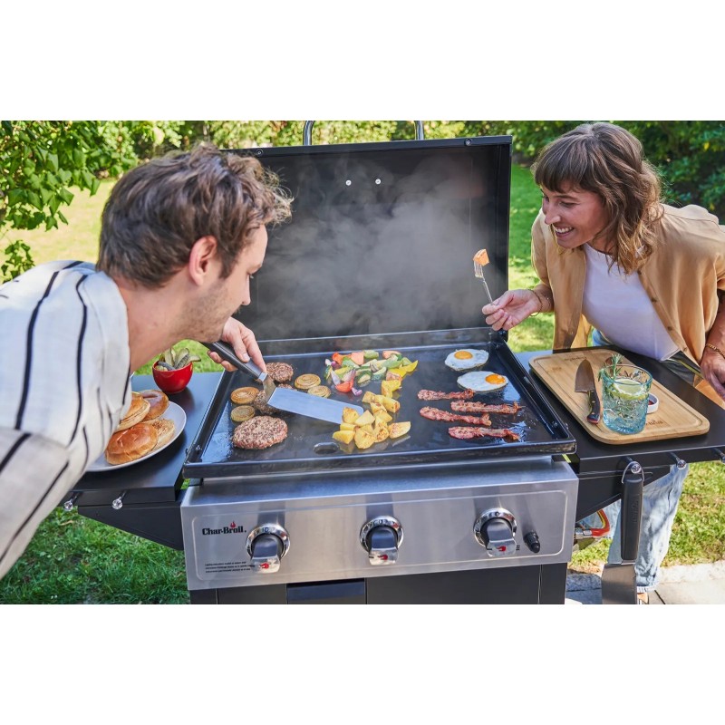 Wenn Sie einen Grill suchen, der Ihnen ermöglicht, nicht nur Fleisch, sondern auch Gemüse, Meeresfrüchte oder sogar Frühstücksgerichte zuzubereiten, ist der Char-Broil Griddle 3400 die perfekte Wahl. Die große, porzellanemaillierte Gusseisen-Grillplatte sorgt für eine gleichmäßige Wärmeverteilung und bewahrt die Saftigkeit der Produkte.