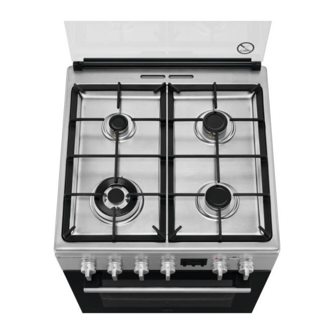 60 cm breiter, freistehender Gasherd mit multifunktionalem Elektrobackofen. Ideal für alle, die die Vorteile eines leistungsstarken Gaskochfelds (einschließlich WOK) schätzen, aber auch die fortschrittlichen Funktionen eines Elektrobackofens nutzen möchten.