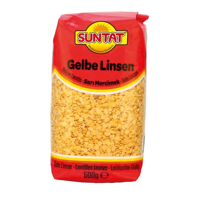 Die Marke Suntat bietet eine Vielzahl von verschiedenen Lebensmittelkategorien an, darunter auch Hülsenfrüchte. Wenn Sie oft Erbsen oder Bohnen gegessen haben, empfehlen wir eine hervorragende alternative – Linsen. Gelbe Linsen von Suntat sind eine nahrhafte Hülsenfrucht, reich an wertvollen Nährstoffen und Ballaststoffen, mit einem angenehmen, unverwechselbaren Geschmack und einem leichten, in vielen Gerichten üblichen Aroma. Gelbe Linsen werden als hervorragende Beilage zu Fleisch- oder Gemüsegerichten verwendet, sie werden reichlich in leckere Suppen gegeben, daraus können köstliche Breie gekocht werden, gelbe Linsen werden in vielen großartigen Eintöpfen verwendet, sie sind ein Hauptgericht in vegetarischer und veganer Ernährung.