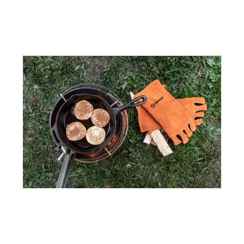 Der Petromax Pfannenhalter ist ein hervorragendes Werkzeug für komfortables Braten und Kochen im Freien. Dieser Halter ist so konstruiert, dass er Pfannen, Töpfe und andere Kochgefäße stabil und sicher über offenem Feuer hält.