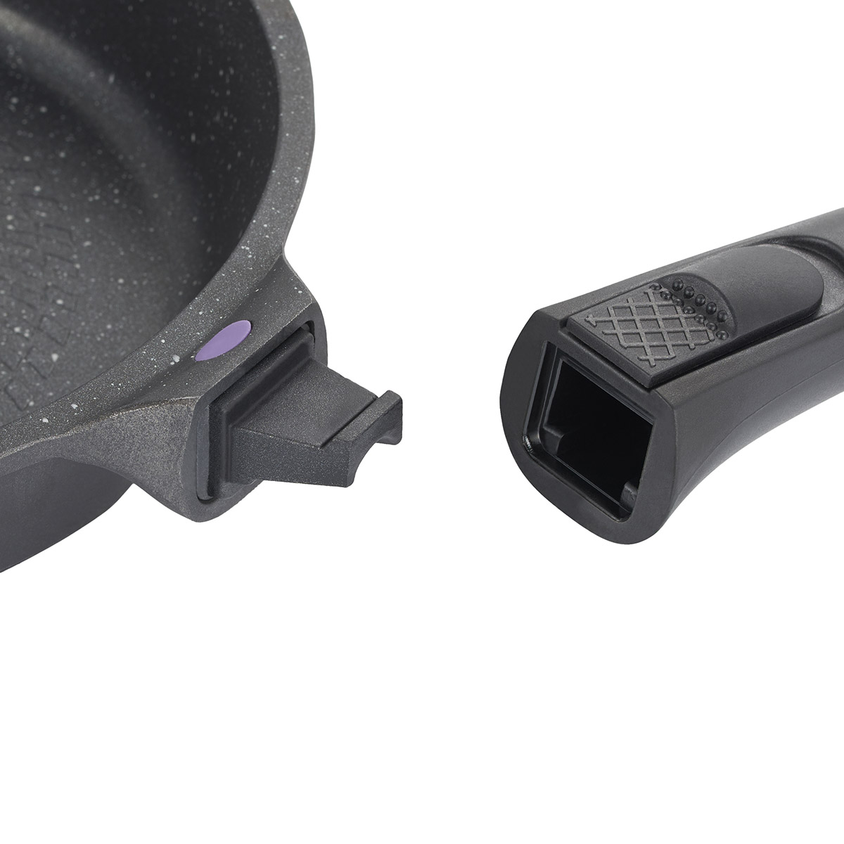Platzersparnis: Der abnehmbare Griff ermöglicht es, Pfannen kompakt in Schränken oder im Geschirrspüler zu verstauen, wodurch viel Platz gespart wird.