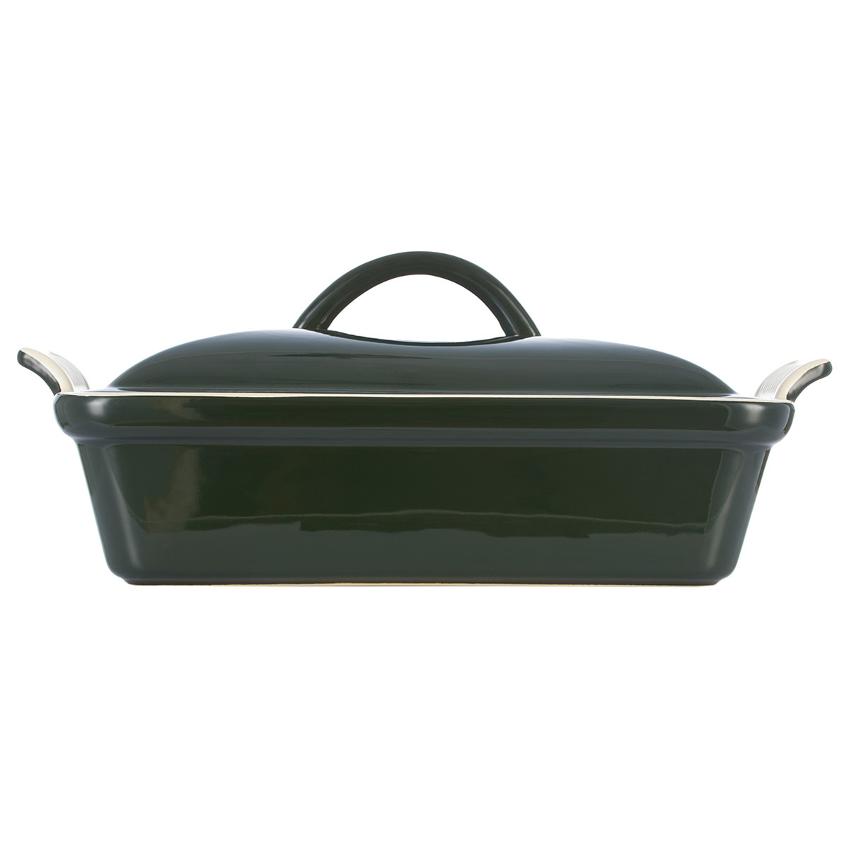 Rechteckige Keramik-Backform mit Deckel zum Backen und Schmoren von Fleisch, Gemüse, Pasta und Kuchen im Ofen. Geeignet zum Servieren.