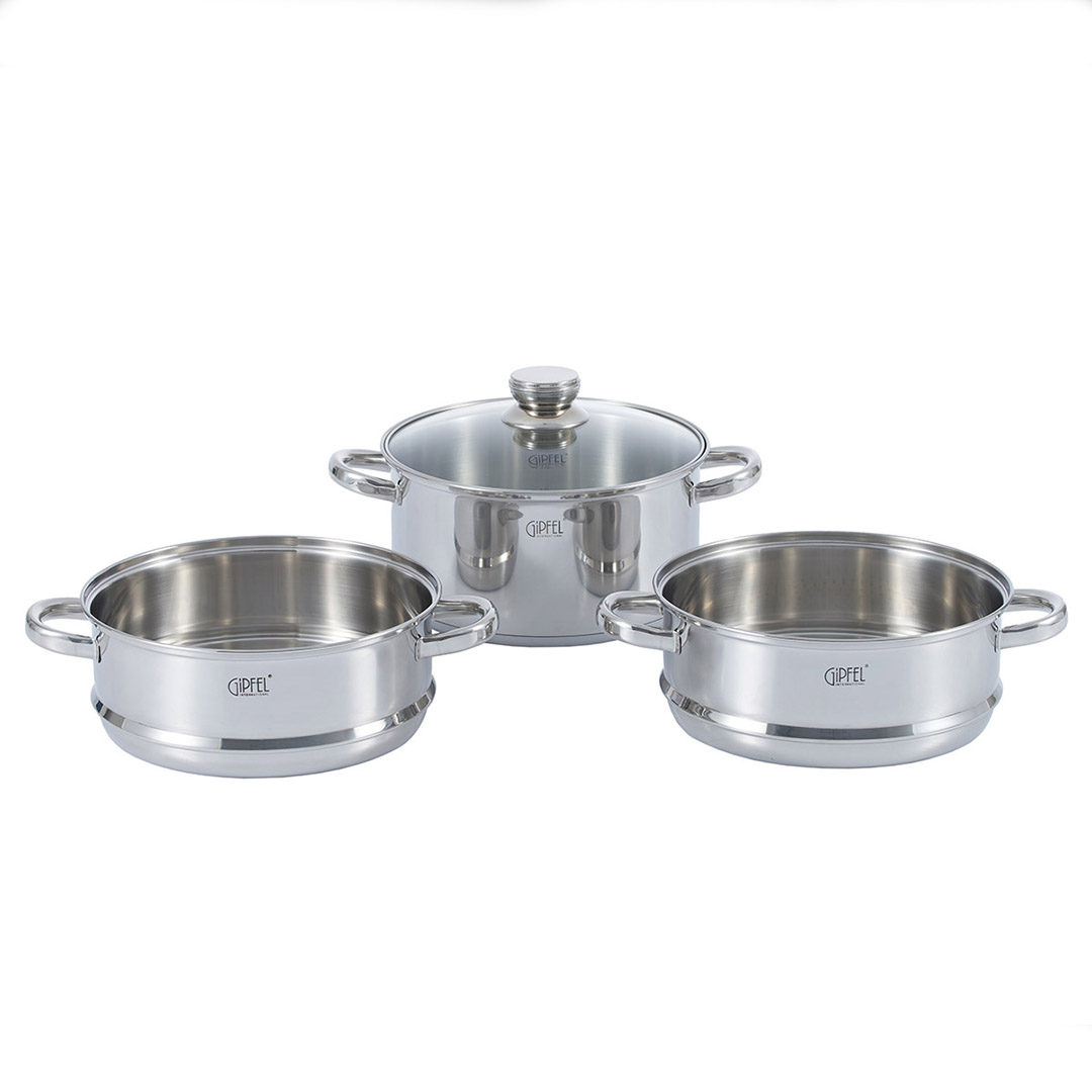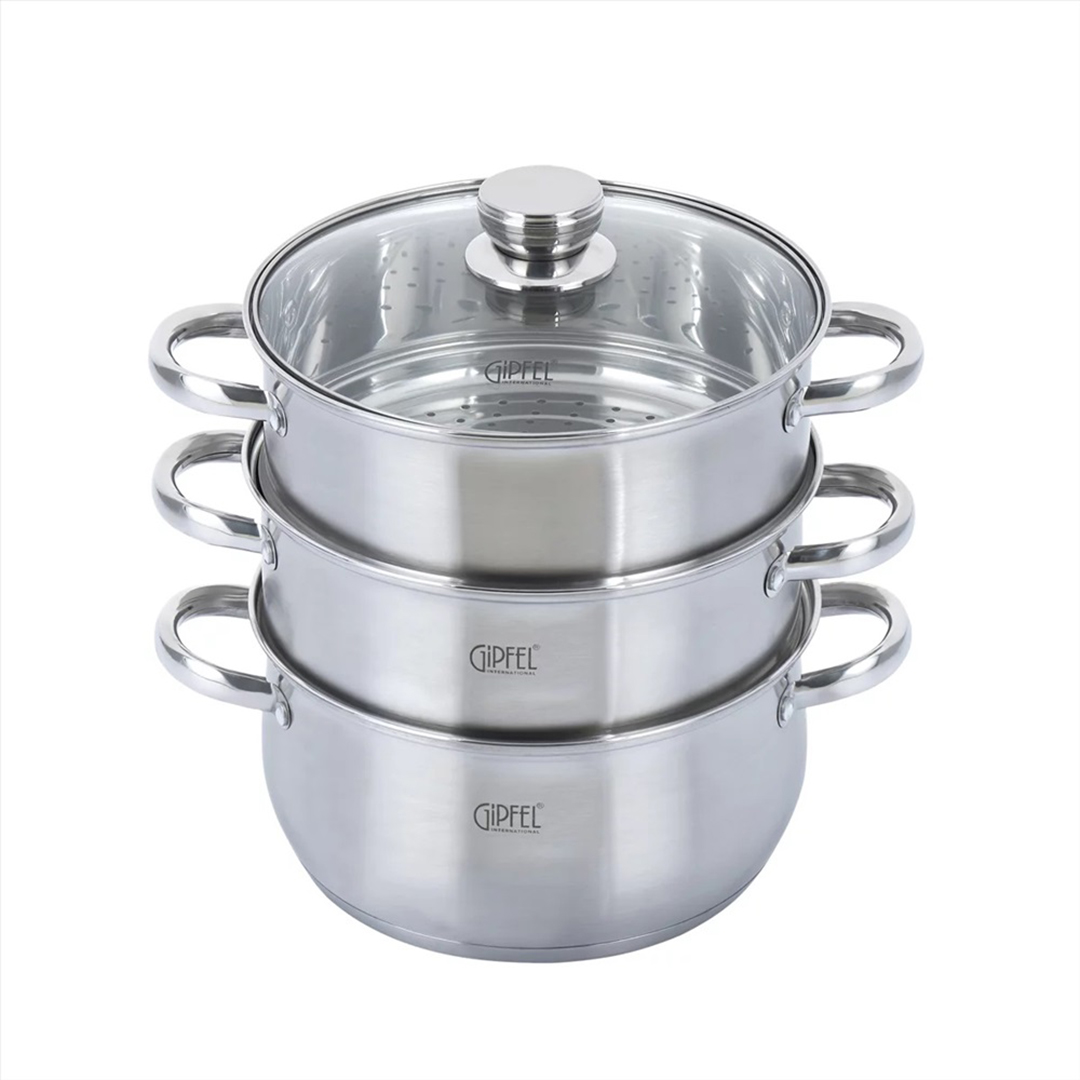 Der Dampfgarer ist aus umweltfreundlichen Materialien hergestellt, die es ermöglichen, die Vitamine während des Kochens maximal zu erhalten. Das Produkt hat ein ergonomisches Design, das zu jeder Kücheneinrichtung passt. Die Griffe sind punktgeschweißt.