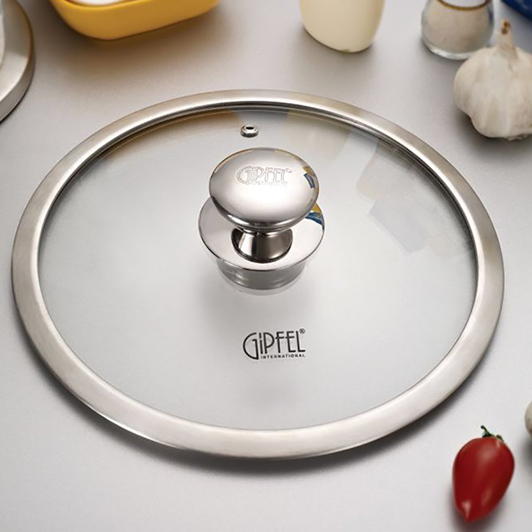 Der gläserne Deckel passt auf viele Töpfe und Pfannen mit einem Durchmesser von 28 cm