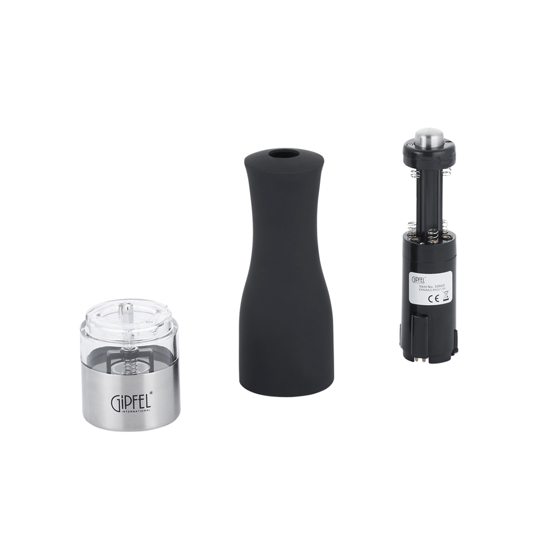 Die elektrische Mühle GIPFEL CASTLE ist ein Beispiel dafür, wie eine ideale elektrische Gewürzmühle sein sollte. Es verfügt über einen Einstellknopf für Licht und Mahlgrad, so dass es für alle Arten von Gewürzen geeignet ist. Das transparente Kunststoffelement ermöglicht die visuelle Kontrolle über die Menge der Gewürze in der Mühle, und die keramischen Mahlwerke kombinieren Schärfe und Langlebigkeit perfekt. Beachten Sie die kräftige schwarze Farbe, die die Mühle nicht nur zu einem praktischen Accessoire, sondern auch zu einem stilvollen Element der Inneneinrichtung macht.