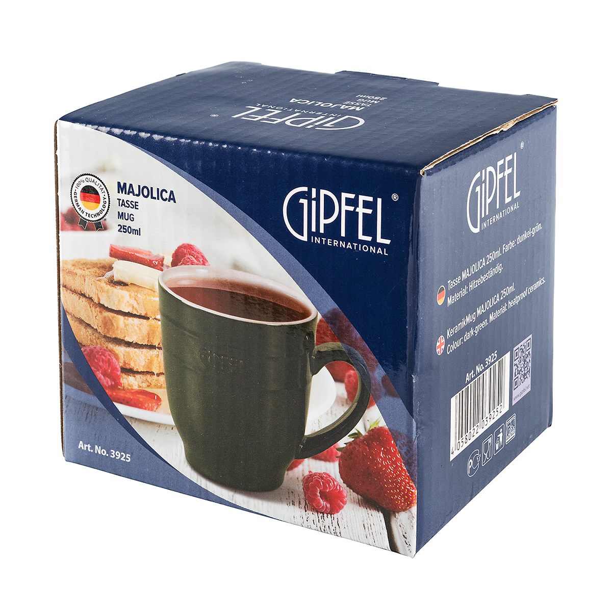 Wir präsentieren GIPFEL Majolica 3925 – eine Tasse mit außergewöhnlichem Design, die Ihre Tee- oder Kaffeepause zu etwas Besonderem macht. Inspiriert von traditioneller französischer Keramik, zeichnet sich diese Tasse durch eine tiefe, dunkelgrüne Farbe außen und einen hellen Beigeton innen aus. Hergestellt aus hochwertiger, hitzebeständiger Keramik, sieht sie nicht nur stilvoll aus, sondern hält auch die Getränketemperatur lange.