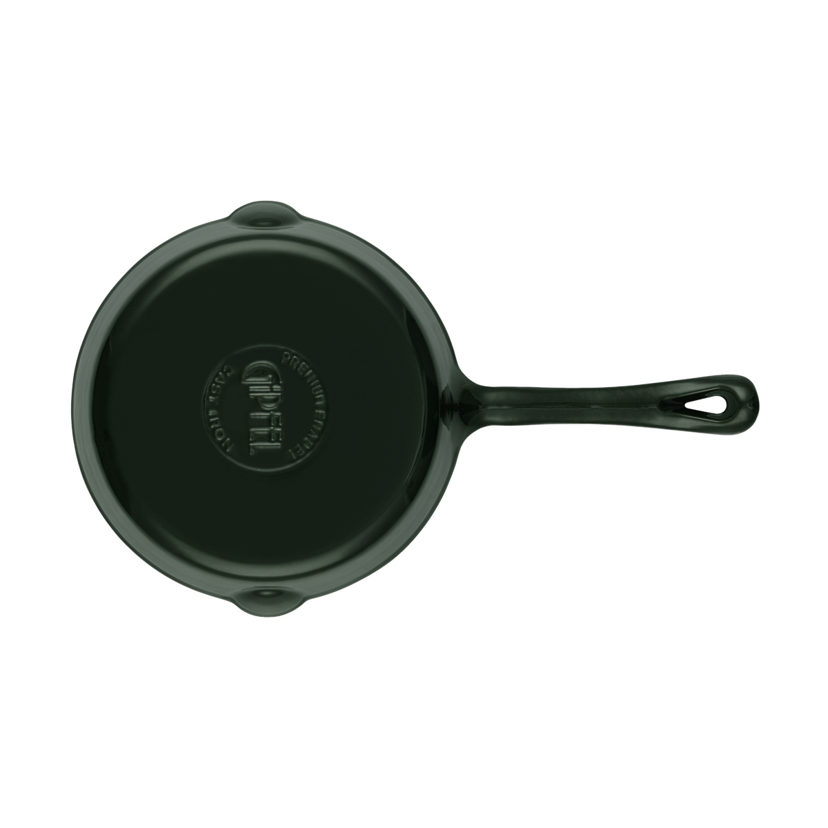 Beschichtung: Emaille (Außen – dunkelgrün glänzend, Innen – schwarz/dunkel matt Emaille).