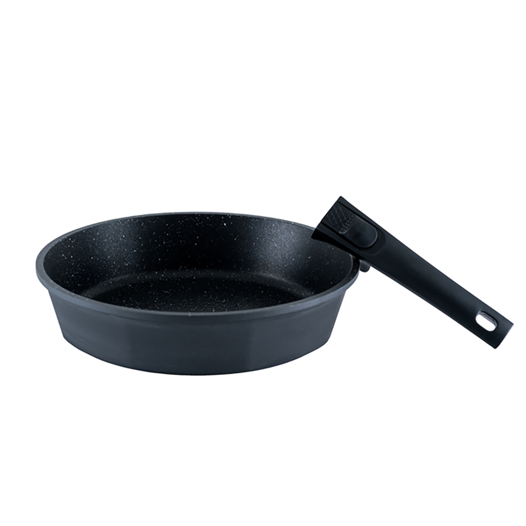 Der größte Vorteil dieses Modells ist der leicht abnehmbare Bakelitgriff. Mit einem Knopfdruck verwandelt sich die Pfanne: Kochen Sie auf dem Herd, nehmen Sie dann den Griff ab und backen Sie im Ofen fertig. Dies ist die ideale Lösung für die Zubereitung von Aufläufen oder Gerichten, die eine gleichmäßige Hitze benötigen. Außerdem spart der abnehmbare Griff Platz in den Schränken und ermöglicht eine bequeme Reinigung der Pfanne in der Spülmaschine.