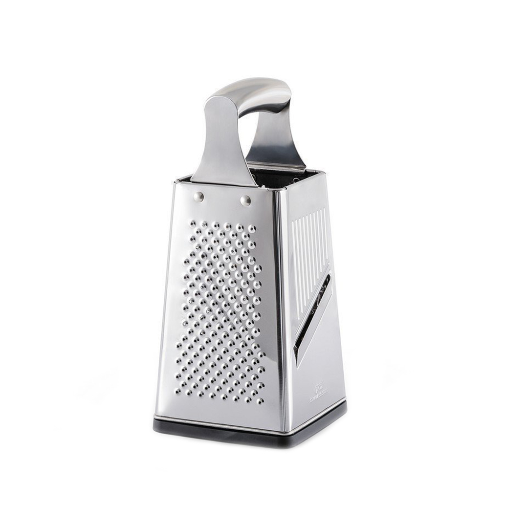 4 Schneidearten: Vier verschiedene Seiten ermöglichen die Wahl der gewünschten Reibart: vom feinen Reiben (z. B. Zitronenschale) bis zum groben Schneiden (z. B. für Käse oder Gemüse).