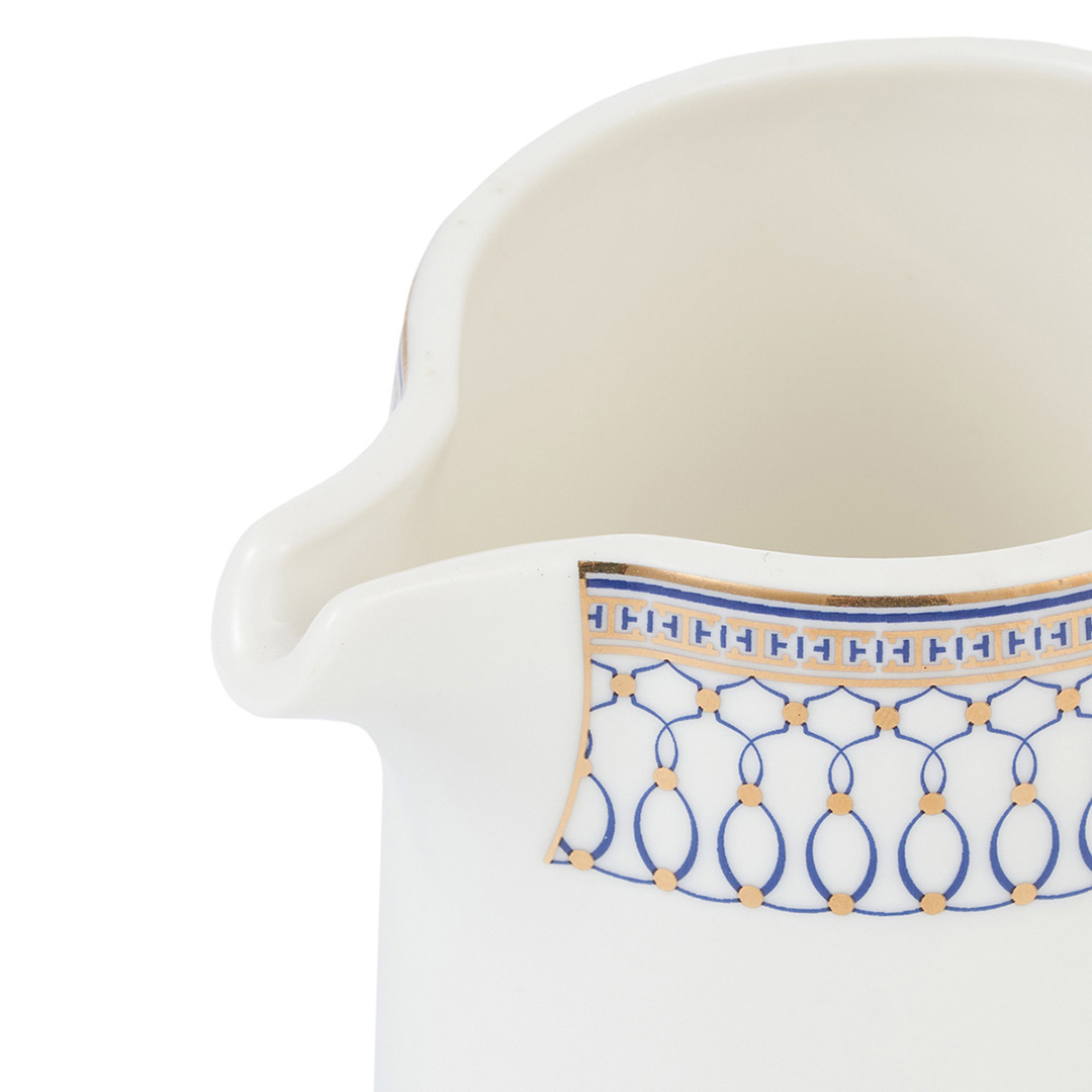 Die glatte Oberfläche und das elegante Design erzeugen einen ausgezeichneten visuellen Eindruck. Jedes Detail ist sorgfältig durchdacht, um die Raffinesse des Servierens zu betonen. Die Schneeweiße der Oberfläche der Gipfel Orpheus Kollektion und das blaue, bizantinische Muster mit raffiniertem Goldakzent ergänzen sich harmonisch und verschmelzen zu einer einzigartigen, wunderschönen Komposition. Decken Sie einen festlichen Tisch im gleichen Stil ein und setzen Sie den richtigen Ton, um mit “Gipfel” Geschirr eine festliche Atmosphäre zu schaffen. Verpackt in einer Firmenschachtel.