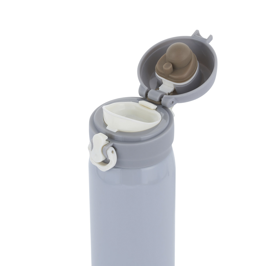 100% dicht: Der Becher ist auslaufsicher und die zusätzliche Knopfsperre schützt vor versehentlichem Öffnen in der Tasche.