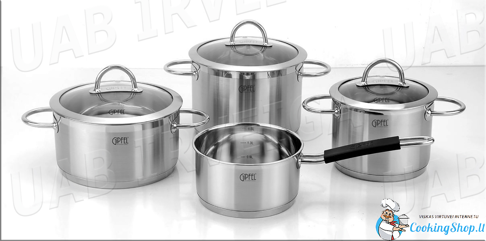 Wir präsentieren GIPFEL Signo – ein 7-teiliges Topfset (4 Töpfe und 3 Deckel), das für eine lange und effiziente Nutzung entwickelt wurde. Hergestellt aus hochwertigem Edelstahl 18/10, garantiert dieses Set, dass die Töpfe nicht anlaufen, rosten oder ihre Farbe verändern, und der fortschrittliche Boden sorgt für perfektes Kochen.