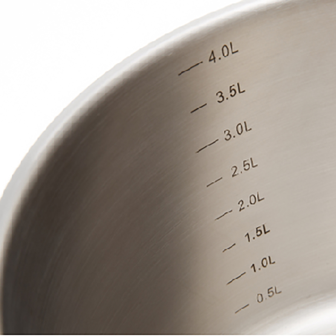 Praktisches Set: Das Set besteht aus unterschiedlich großen Töpfen und einer Stielkasserolle für das tägliche Kochen. Die Töpfe haben innen eine Liter-Skala für genaues Abmessen.