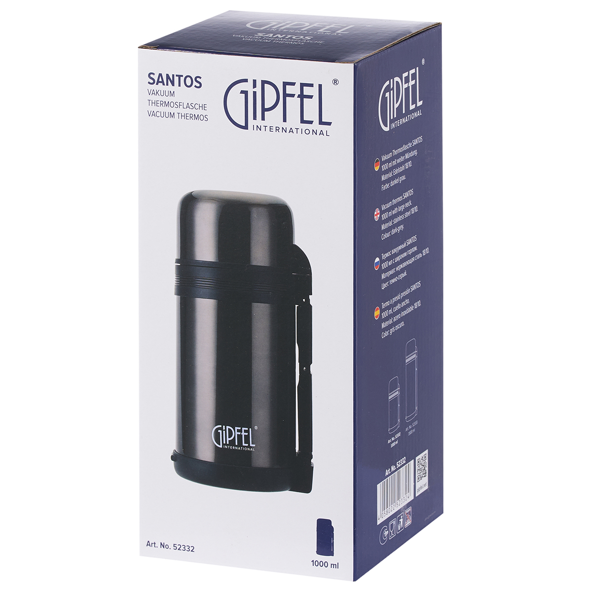 Der Thermoskanne der GIPFEL Santos Kollektion ist die perfekte Wahl für alle, die Wert auf Qualität und Ästhetik legen. Hergestellt aus hochwertigem Edelstahl 18/10, sieht dieses 1-Liter-Gefäß nicht nur solide aus, sondern zeichnet sich auch durch Langlebigkeit aus. Die dunkelgraue Farbe verleiht ihm Modernität, sodass die Thermoskanne sowohl auf dem Bürotisch als auch bei einem Ausflug in die Natur eine gute Figur macht.
