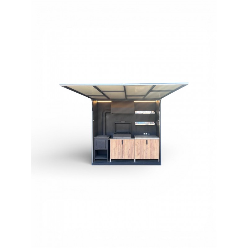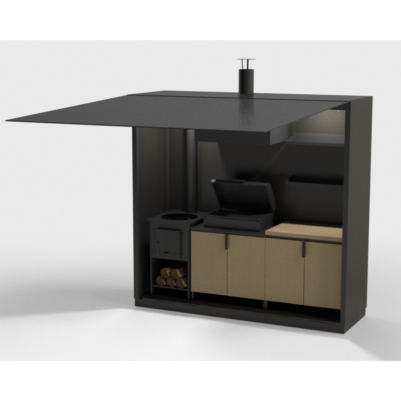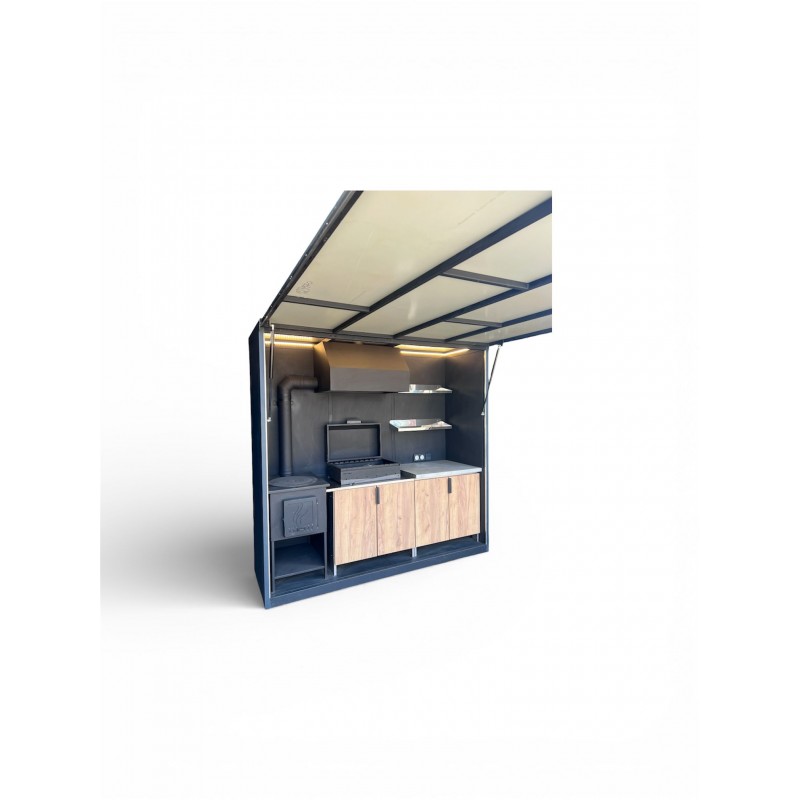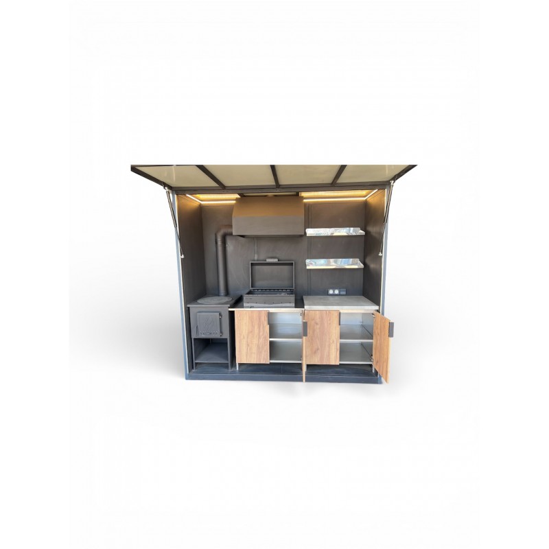 Dieser Komplex ist mobil (klappbar) und verfügt über alle notwendigen integrierten Funktionen (Beleuchtung, Rauchabzug, Arbeitsfläche) in einem Gehäuse.