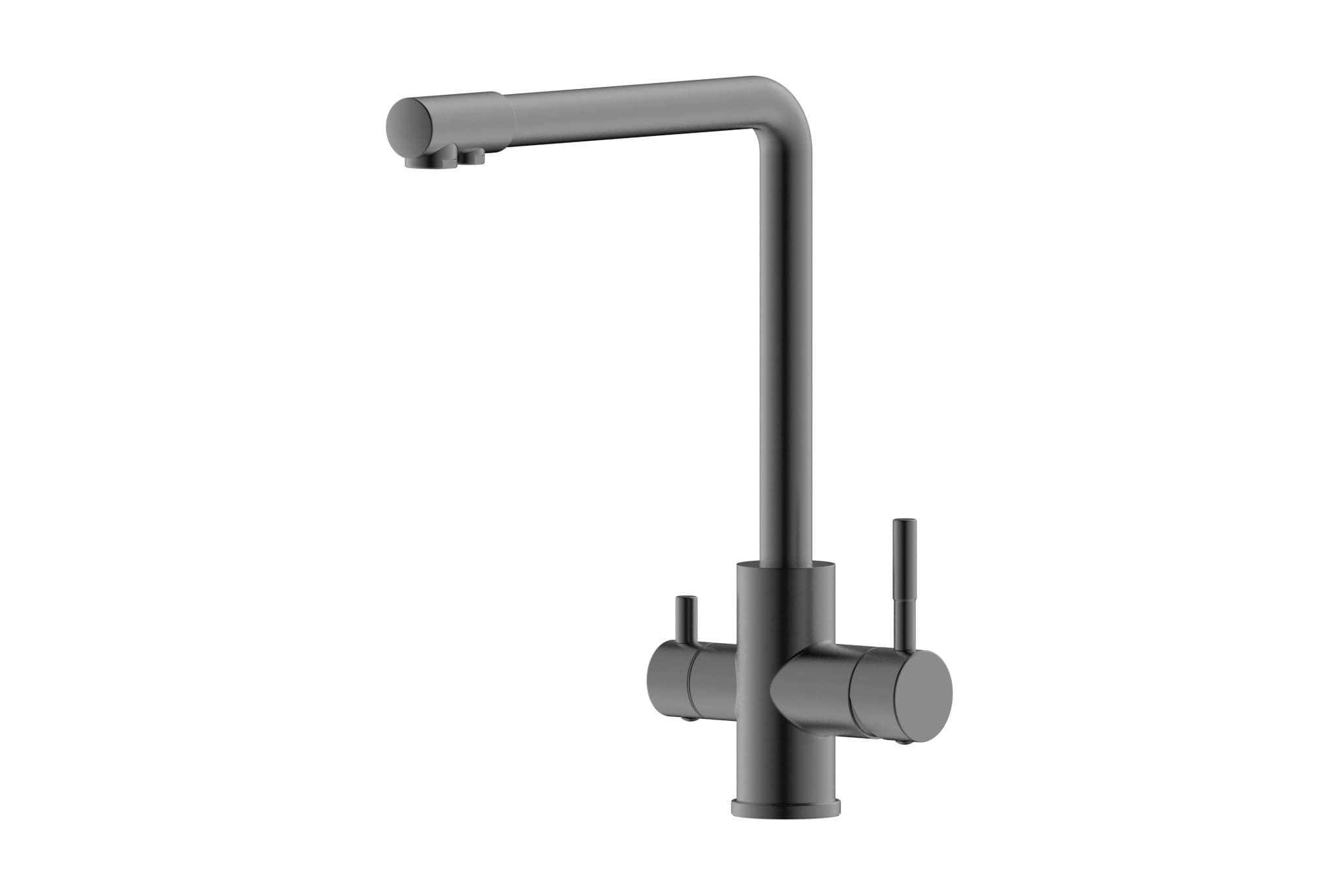 Küchenarmatur zur Versorgung mit kaltem und warmem Wasser, mit zusätzlichem Anschluss für gefiltertes Wasser. Geeignet für die Montage auf der Küchenspüle.