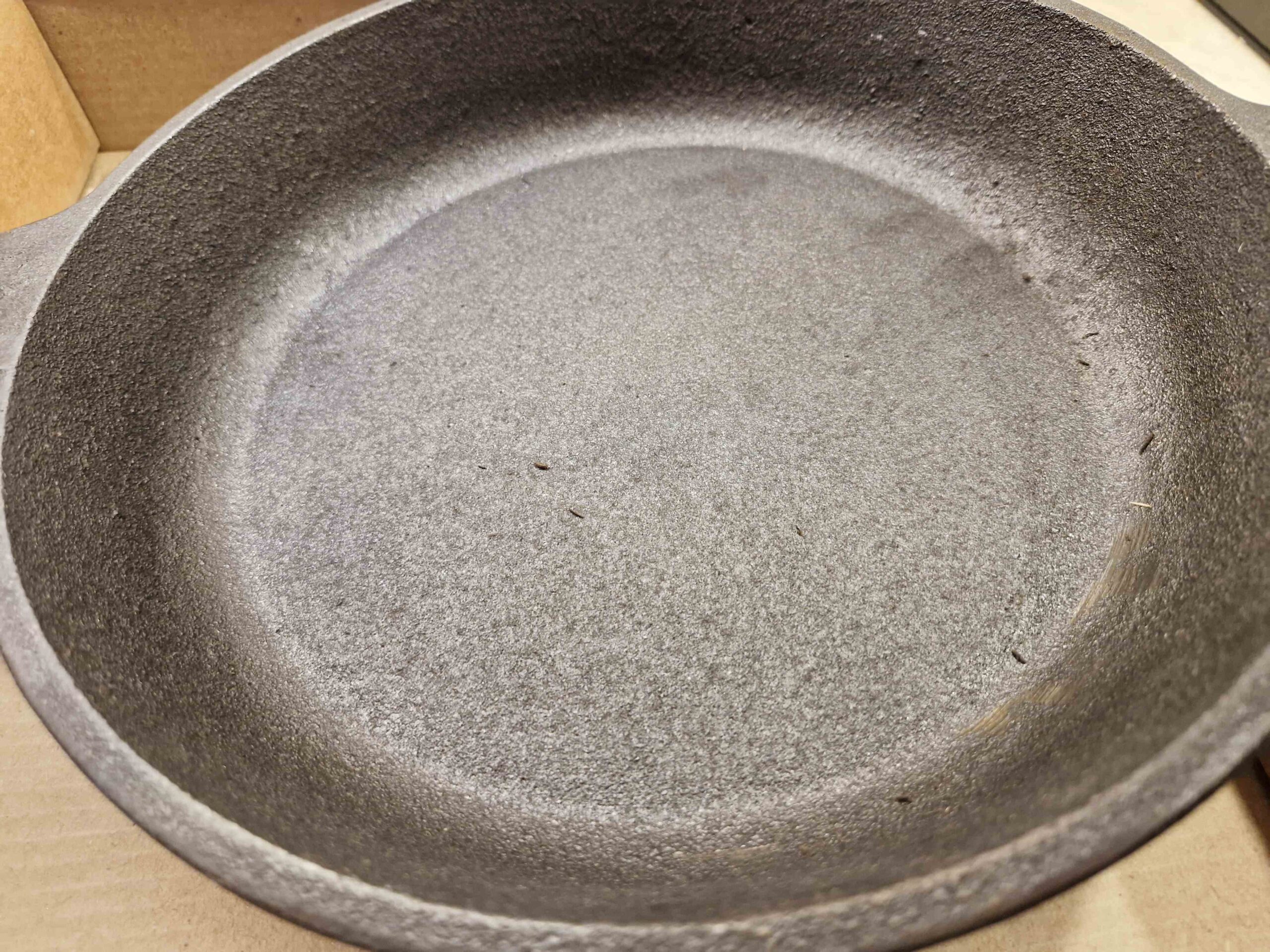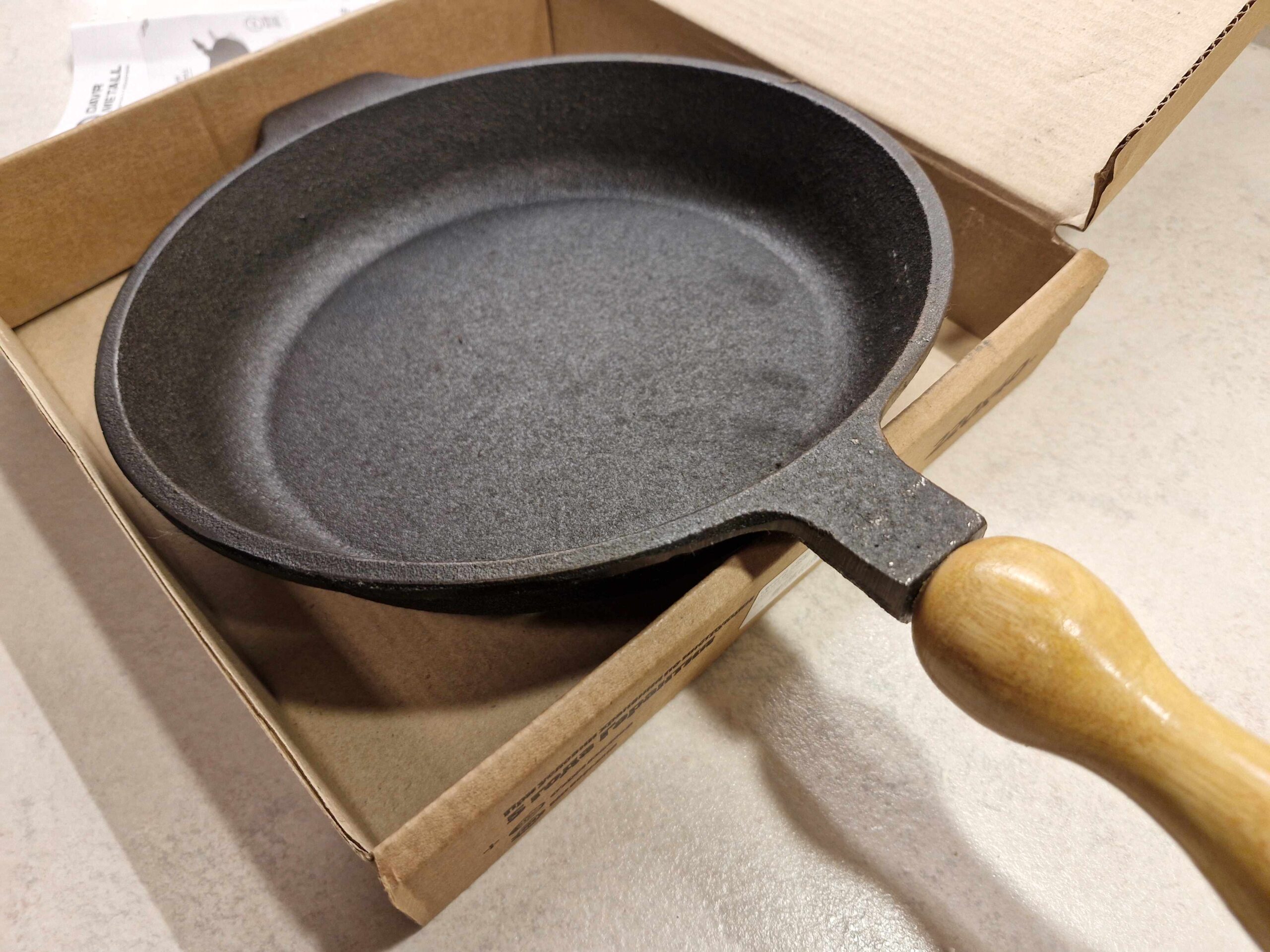 Keine Sorge – das ist bei Gusseisenprodukten natürlich, wenn sie feucht gelassen werden. Entfernen Sie den Rost mit einem harten Schwamm oder Salz, spülen Sie die Pfanne ab, trocknen Sie sie gut ab und führen Sie den Einbrennvorgang (Einfetten mit Öl und Erhitzen) erneut durch.