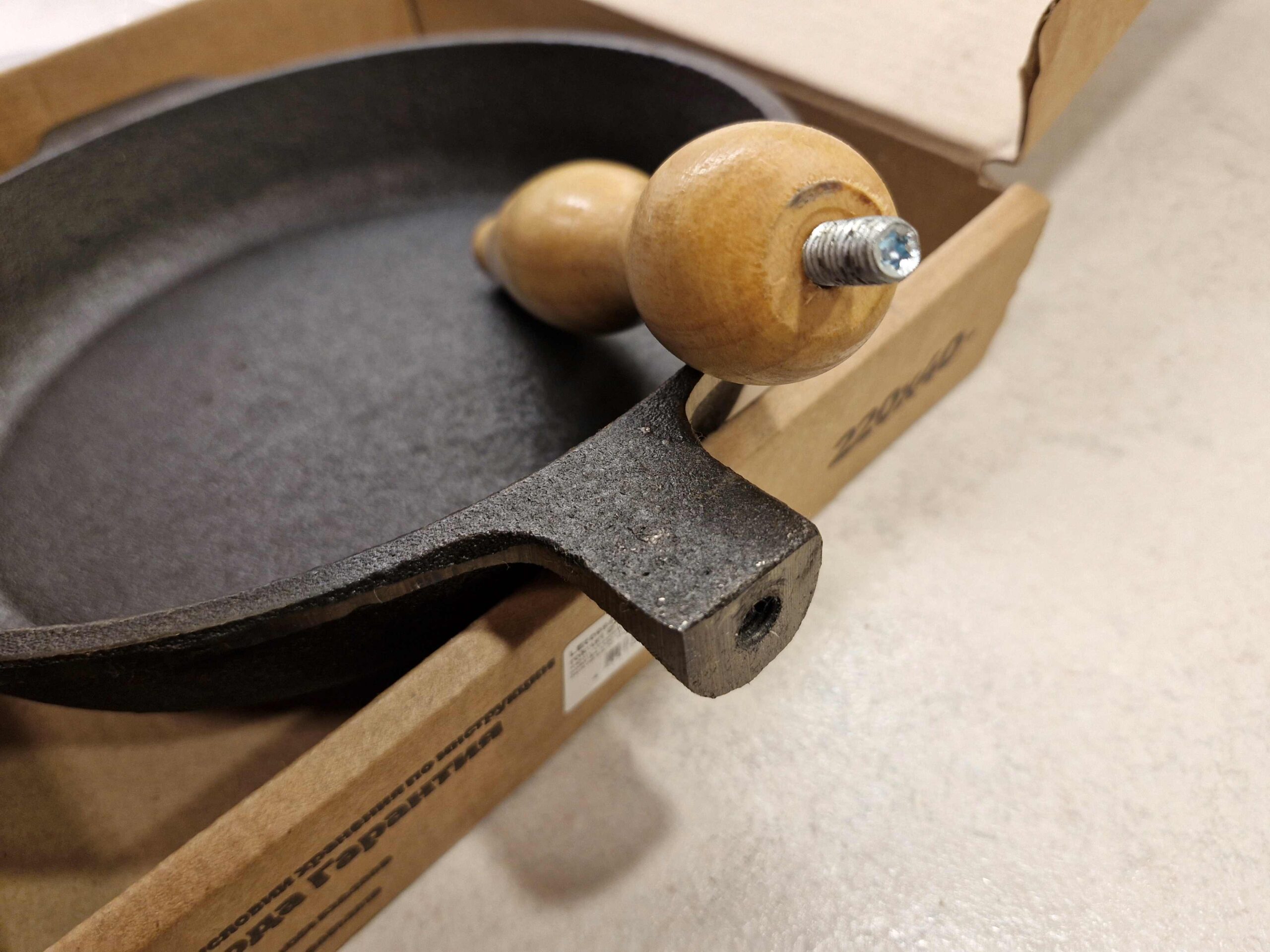 Eine Besonderheit dieses Modells ist der stilvolle und ergonomische Holzgriff. Er verleiht der Pfanne nicht nur ein klassisches Aussehen, sondern sorgt auch für Komfort beim Kochen auf dem Herd – Holz heizt sich nicht so schnell auf wie Metall, wodurch die Pfanne sicher zu halten ist. Der robuste Korpus mit einer zusätzlichen Gusseisen-Öse an der Seite gewährleistet Stabilität beim Heben der vollen Pfanne.