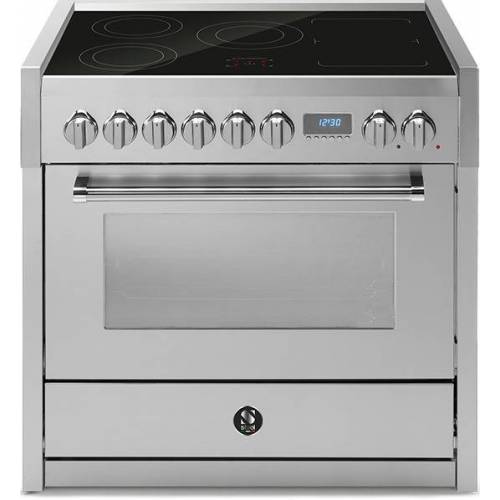 Hochwertiger, freistehender 90 cm breiter Induktionsherd. Aufgrund seines großen Fassungsvermögens, seiner Leistung und seines professionellen Stils ist er ideal für geräumige Küchen, Kochbegeisterte und große Familien.