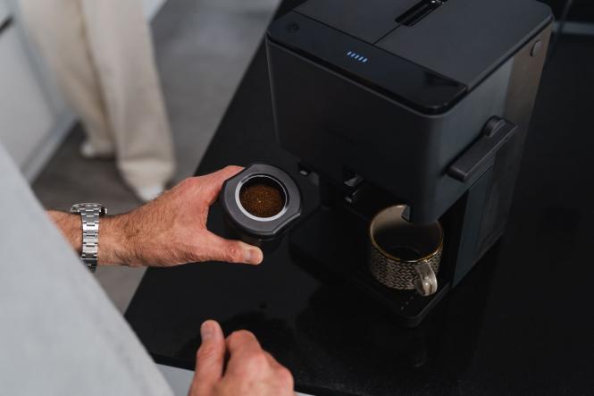 Vergessen Sie die aufwendige Wartung von Kaffeevollautomaten. Nehmen Sie nach der Kaffeezubereitung einfach den “Click Cup” heraus, drehen Sie ihn, und alle Kaffeepulverreste fallen als ein einziger, trockener Puck direkt in den Müll. Sie müssen den Aufsatz nur noch mit einem Tuch abwischen – keine Unordnung, keine Schimmelgefahr.