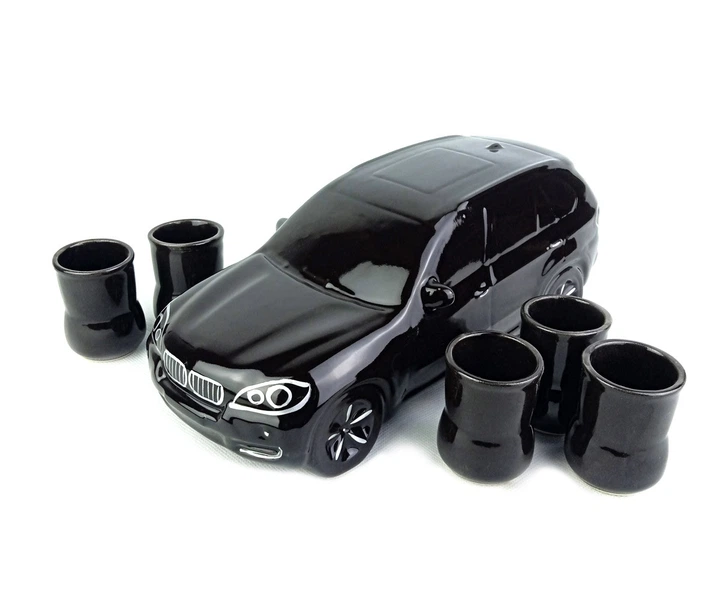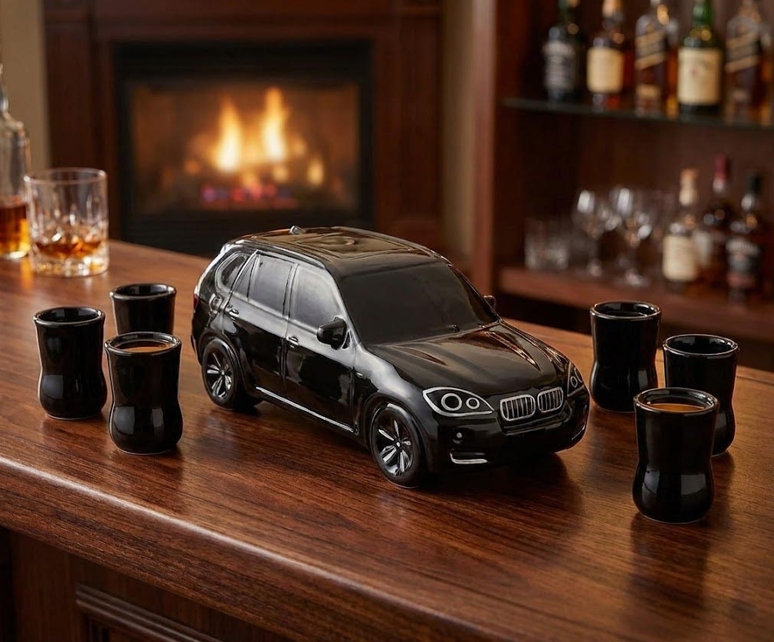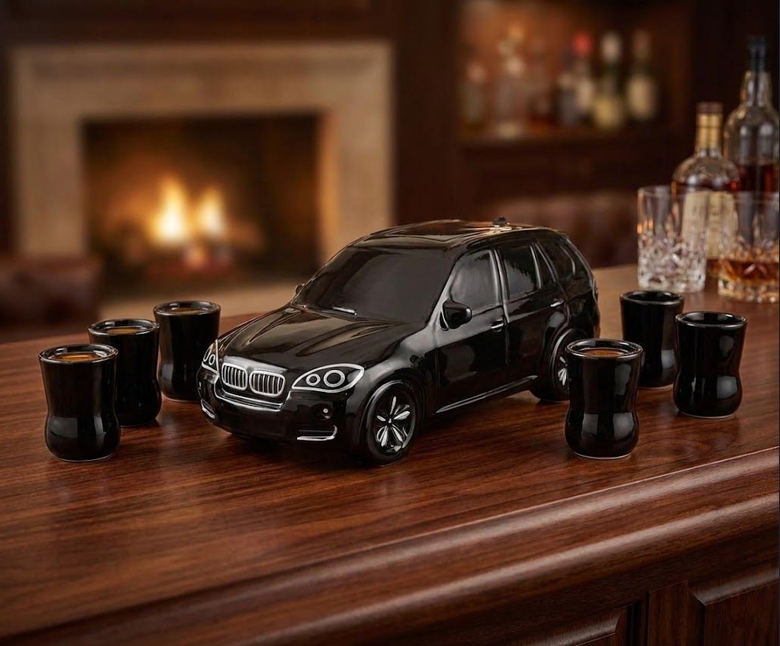 Wir präsentieren ein exklusives Geschenkset für Männer – einen Getränkebehälter in Form eines BMW-Autos. Dieses Set spiegelt die Silhouette eines berühmten, beliebten und von vielen begehrten Autos wider und verleiht dem Tisch einen maskulinen Charakter und Solidität. Es ist nicht nur ein Behälter für Getränke, sondern auch ein stilvolles Detail für die Inneneinrichtung.
