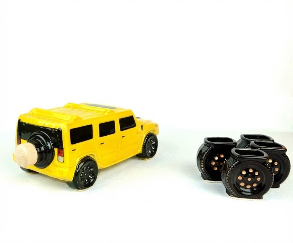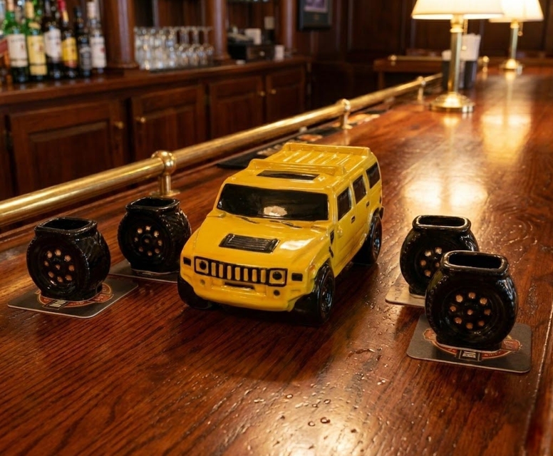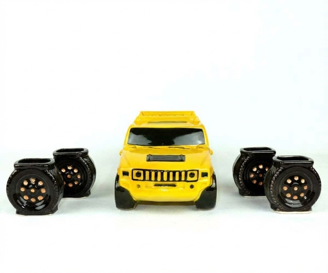Wir präsentieren ein Geschenkset, inspiriert vom kraftvollen und brutalen amerikanischen Geländewagen “Hummer”. Dieses gelbe Keramikauto schmückt nicht nur Ihre Bar, sondern wird auch zum Haupthighlight der Party. Es ist die perfekte Wahl für alle, die Kraft, große Autos und einen außergewöhnlichen Stil lieben.