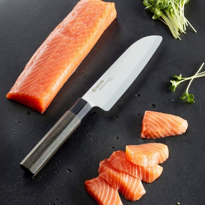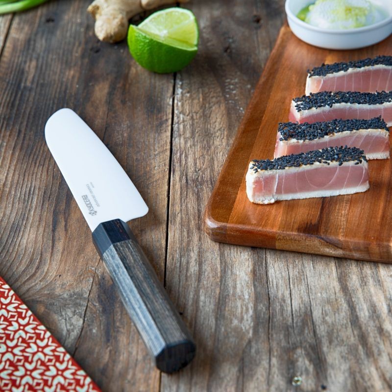 Der Respekt für den japanischen Fuji-Schrein inspirierte Kyocera dazu, die Fuji-Messerserie zu kreieren. Das Design ist eine harmonische Mischung aus Tradition und Moderne, mit diesem Messer wird die Zubereitung von Speisen zu einem Vergnügen. Der handgefertigte achteckige Griff aus polymerisiertem Holz ist hervorragend ausbalanciert, die unübertroffenen Klingen aus Zirkonoxid sind besonders scharf und bleiben bis zu 10 Mal länger als Stahlmesser schärfer. Dieses Messer rostet nicht, ist besonders leicht und leicht zu reinigen.