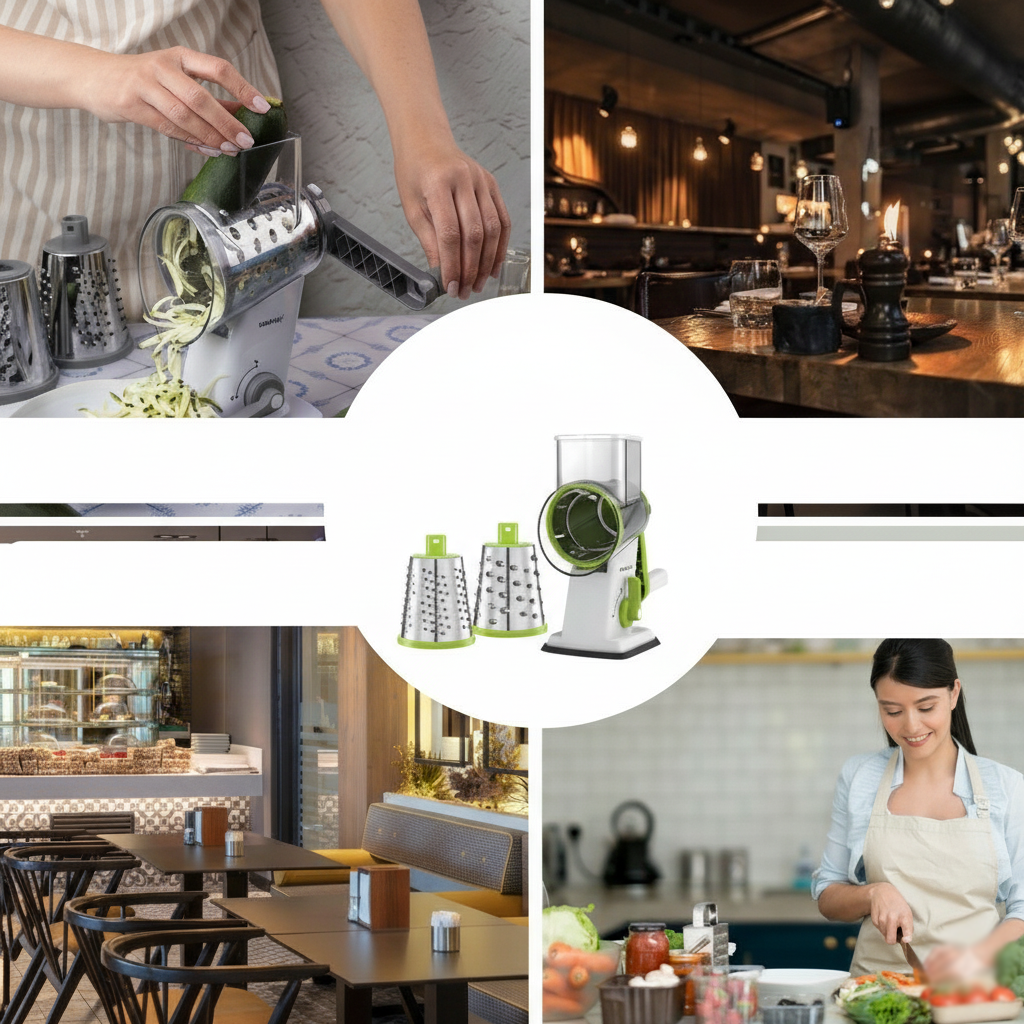 - Stabiler Sockel mit Saugnapf: Die Schneidemaschine/Reibe hat einen starken Vakuumsockel, der fest auf der Arbeitsfläche haftet und verhindert, dass das Gerät während der Arbeit verrutscht.