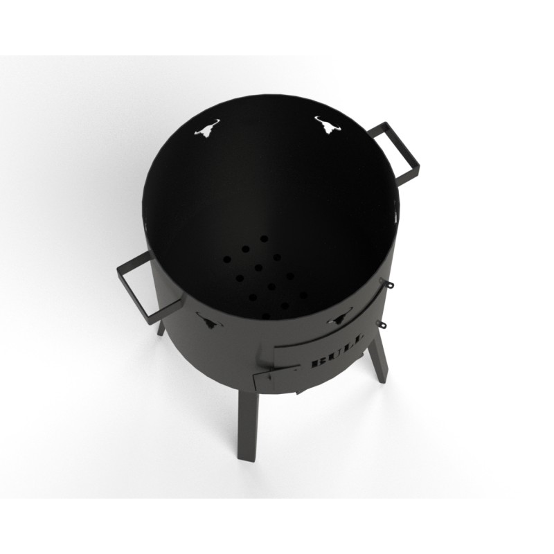 Dieser kompakte Ofen zeichnet sich durch seine geringen Abmessungen aus (52 cm Durchmesser x 63 cm Höhe), was seine Nutzung und den Transport bequem macht. Der “Bull ECO-12” ist für 12-16L Kessel geeignet, und sein Aufbau gewährleistet eine effiziente Wärmeverteilung beim Einsatz von Holz oder Holzkohle. Mit diesem Ofen können Sie mühelos köstliches Fleisch und andere Gerichte auf einer speziellen Pfanne zubereiten – ideal für Camping, Picknicks und alle Outdoor-Kochshows.
