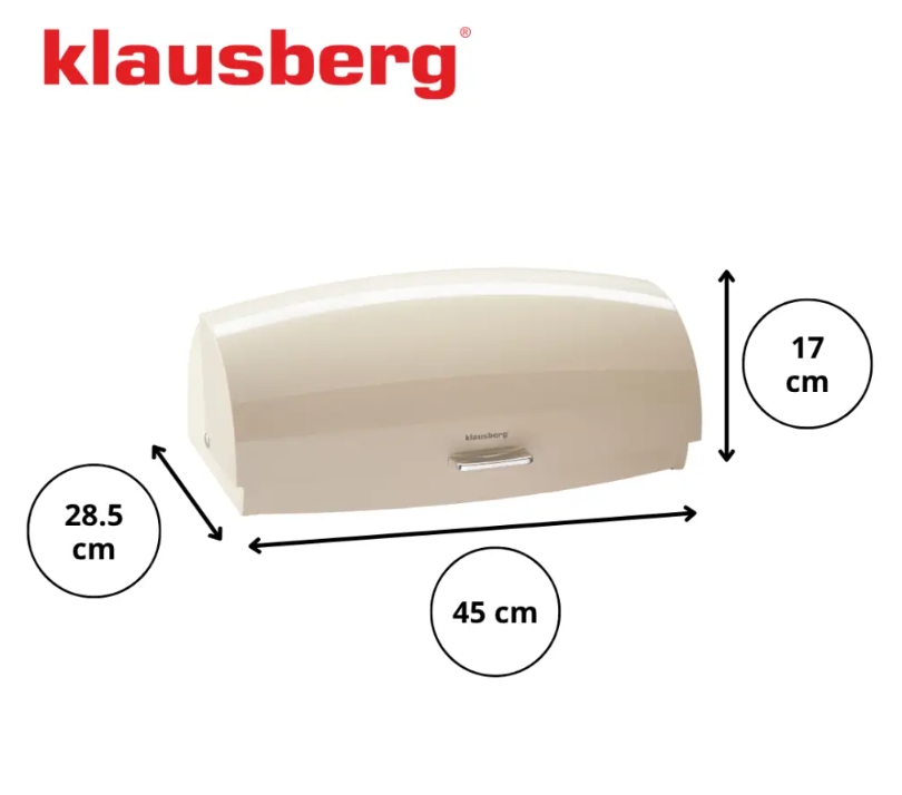 Dank seiner großen Abmessungen (45 cm Länge) ist der Brotkasten sehr geräumig – er bietet bequem Platz für ein Standardbrot, Brötchen und andere Ihrer Lieblingsbackwaren. Aufgrund seines universellen Designs ergänzt der Klausberg Brotkasten ästhetisch das Küchendesign, das in einem modernen, skandinavischen oder sogar rustikalen Stil dekoriert ist.