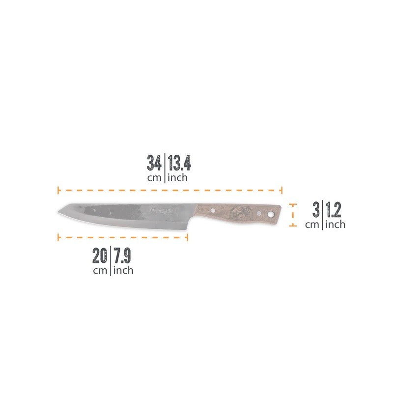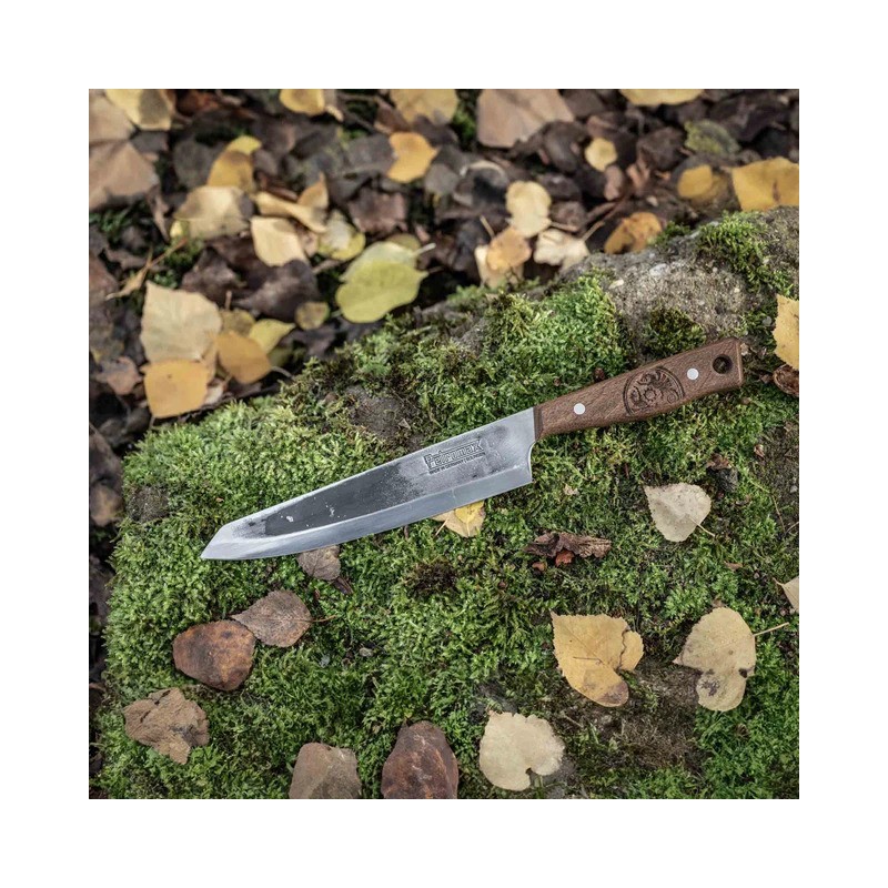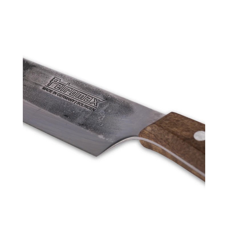 Das Petromax 20 cm Kochmesser ist ein hochwertiges, handgefertigtes Werkzeug, hergestellt in Solingen, Deutschland. Dieses Messer wurde für komfortables und effizientes Schneiden entwickelt, unter Verwendung von Materialien und Fertigungstechnologien höchster Qualität.