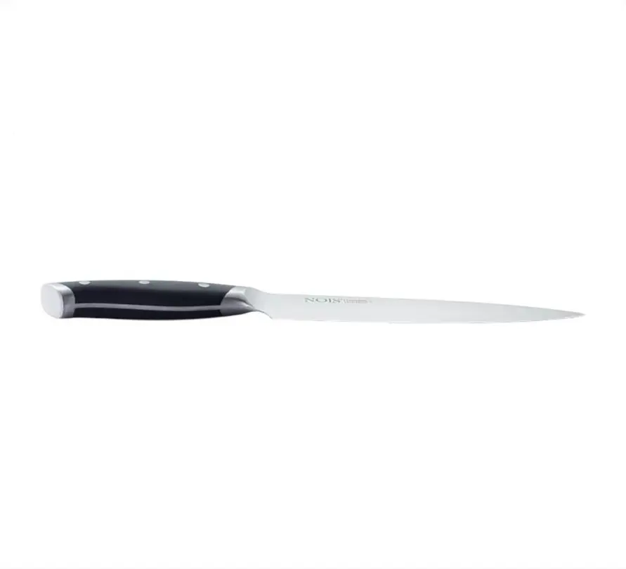 Dies ist das primäre Küchenmesser, das für 80 % aller Schneideaufgaben entwickelt wurde. Aufgrund seines Gewichts und seiner Geometrie eignet es sich hervorragend zum Schneiden großer Fleischstücke, zum Zerkleinern von hartem Gemüse und zum präzisen Hacken von Zutaten.