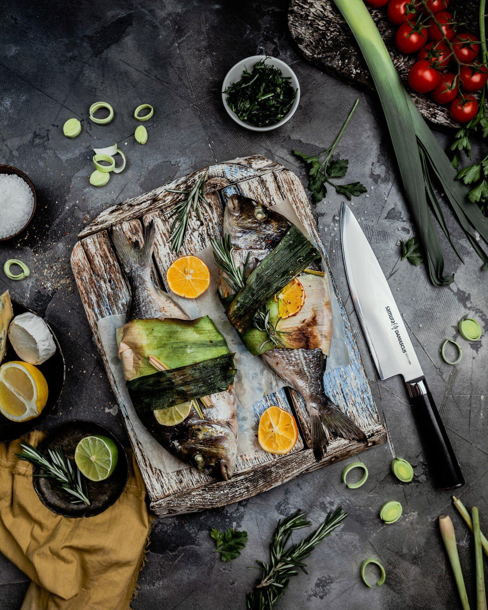 Das Damast- Kochmesser ist ein vielseitiges Messer mit vielfältigen Einsatzmöglichkeiten.