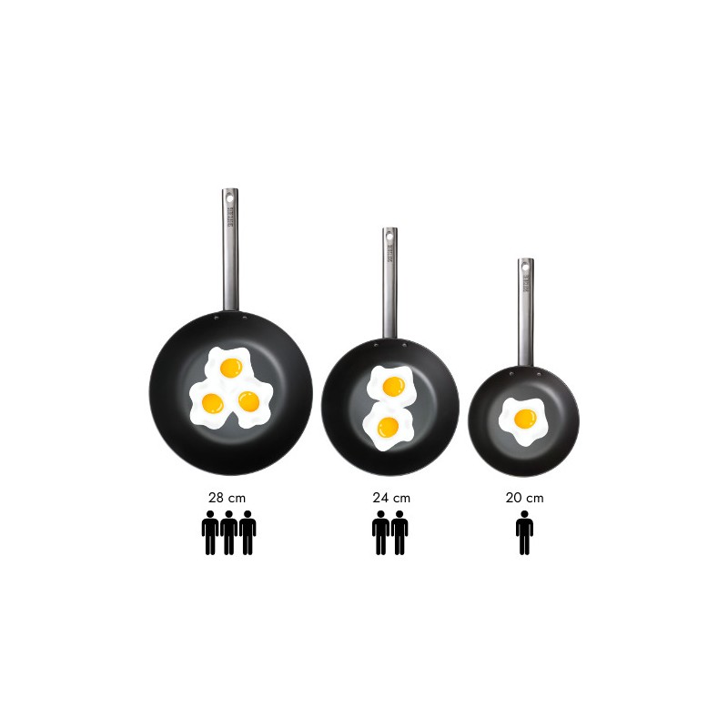 Eine Karbonstahlpfanne vereint die besten Eigenschaften von Edelstahl und Gusseisen. Sie besteht aus einer Mischung aus Eisen und Kohlenstoff. Die Pfanne bietet die Bratgeschwindigkeit und Temperaturregulierung von Edelstahl mit den Antihafteigenschaften von Gusseisenpfannen.