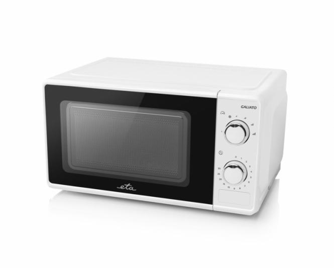 Entdecken Sie die ETA Galiato – eine praktische und äußerst kompakte Mikrowelle, die zu einem unverzichtbaren Helfer in Ihrer Küche wird. Sie ist ideal für kleine Räume – Wohnungen, Studios, Büros oder Gartenhäuser. Dank der einfachen mechanischen Steuerung ist sie für jedes Familienmitglied leicht zu bedienen.